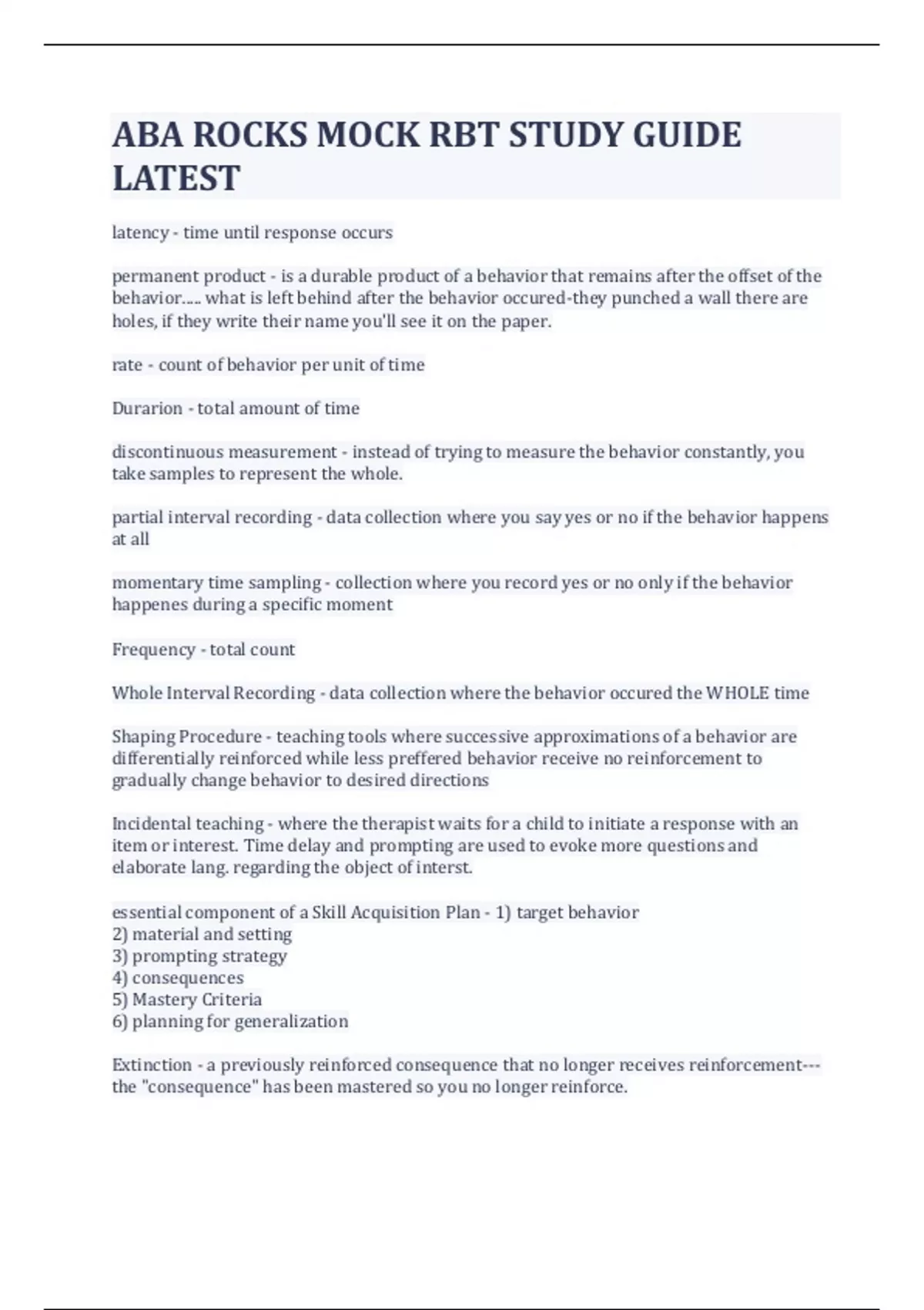 ABA ROCKS MOCK RBT STUDY GUIDE LATEST