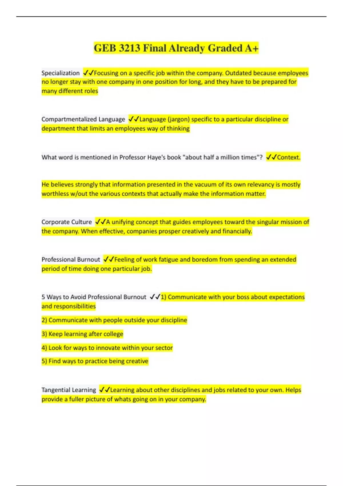 GEB 3213 Final Exam Questions with Correct Answers Already Graded A+