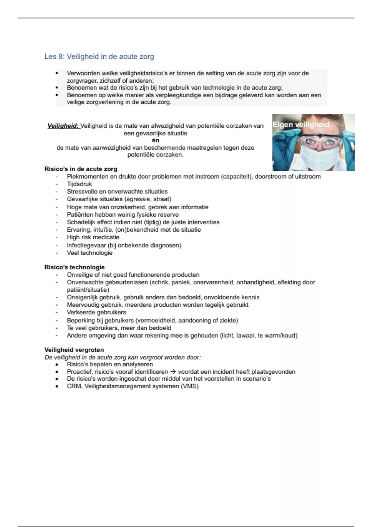 Verwoorden welke veiligheidsrisico’s er binnen de setting van de acute zorg zijn voor de