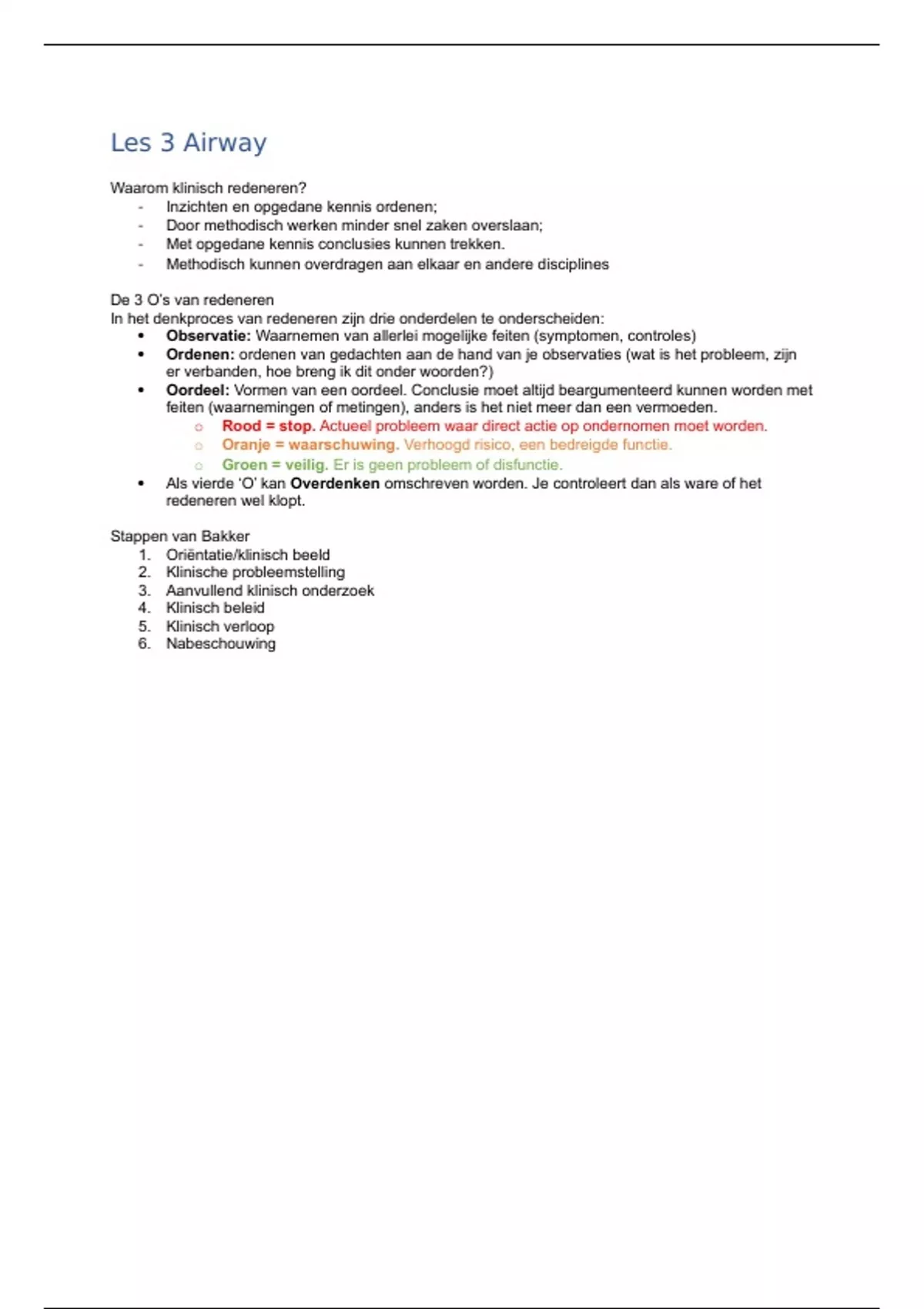 o Rood = stop. Actueel probleem waar direct actie op ondernomen moet worden.