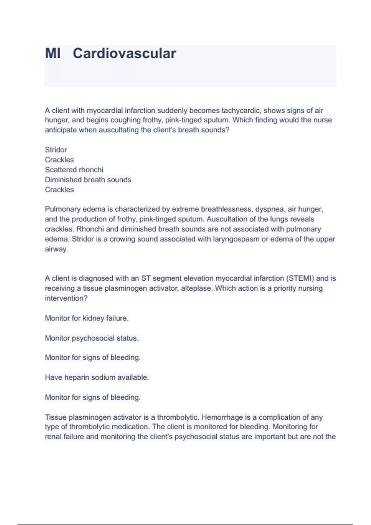 Exam of 18 pages for the course Cardiovascular at Cardiovascular (MI Cardiovascular)