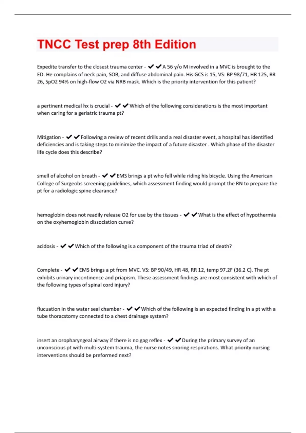 TNCC Test prep 8th Edition Questions and Answers(A+ Solution guide)