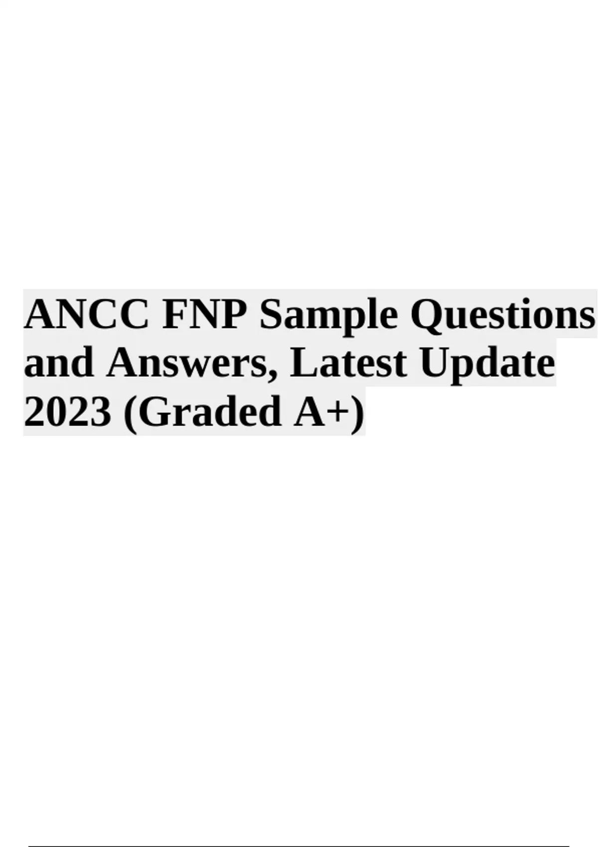ANCC FNP Board Exam Questions and Answers, Latest 2023 (Graded A+)