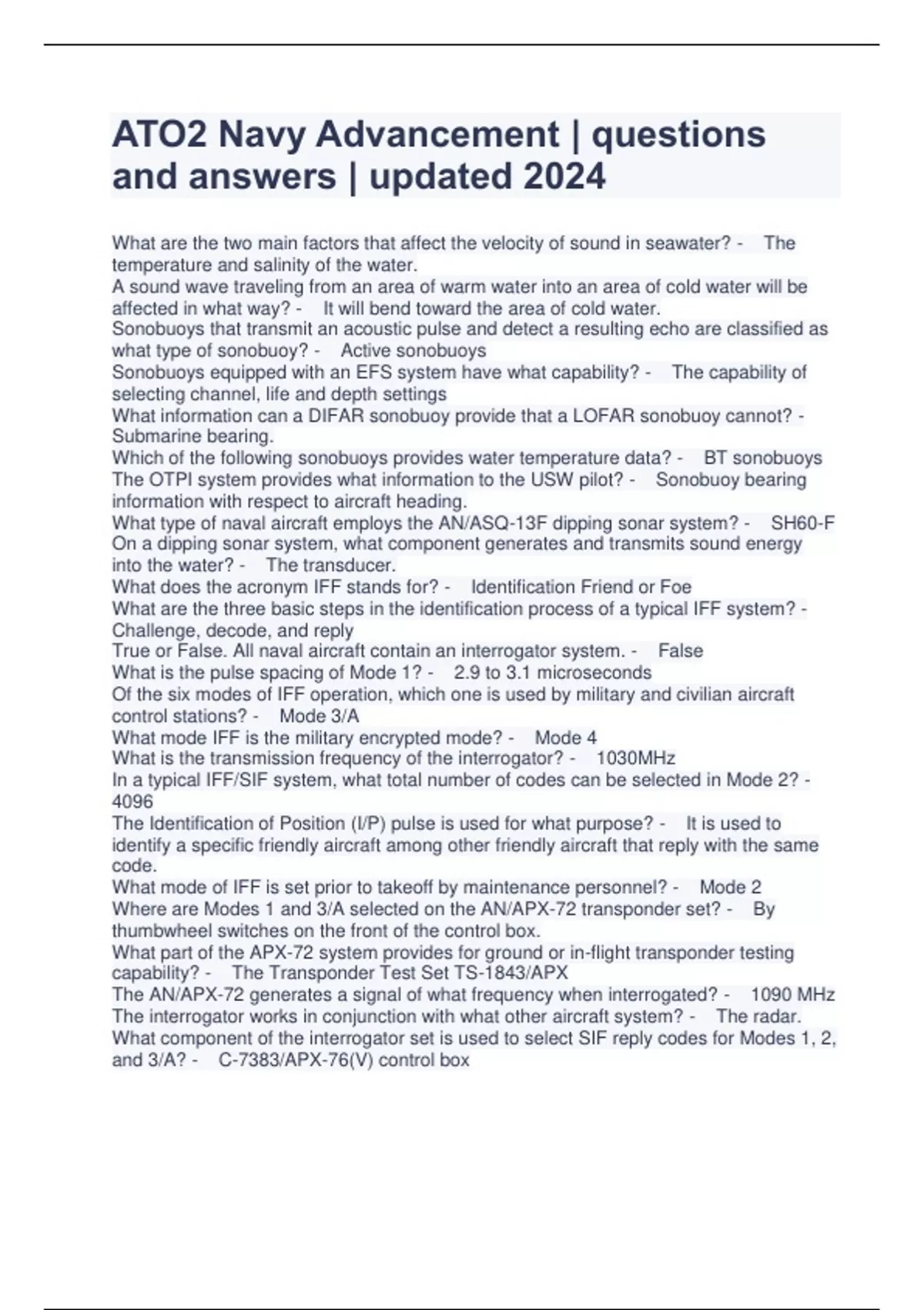 ATO2 Navy Advancement | questions and answers | updated 2024