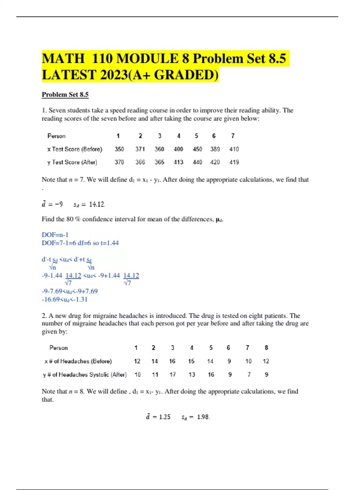 MATH 110 MODULE 8 Problem Set 8.5 LATEST 2023(A+ GRADED)ALL CALCULATIONS SOLVED 100% CORRECT