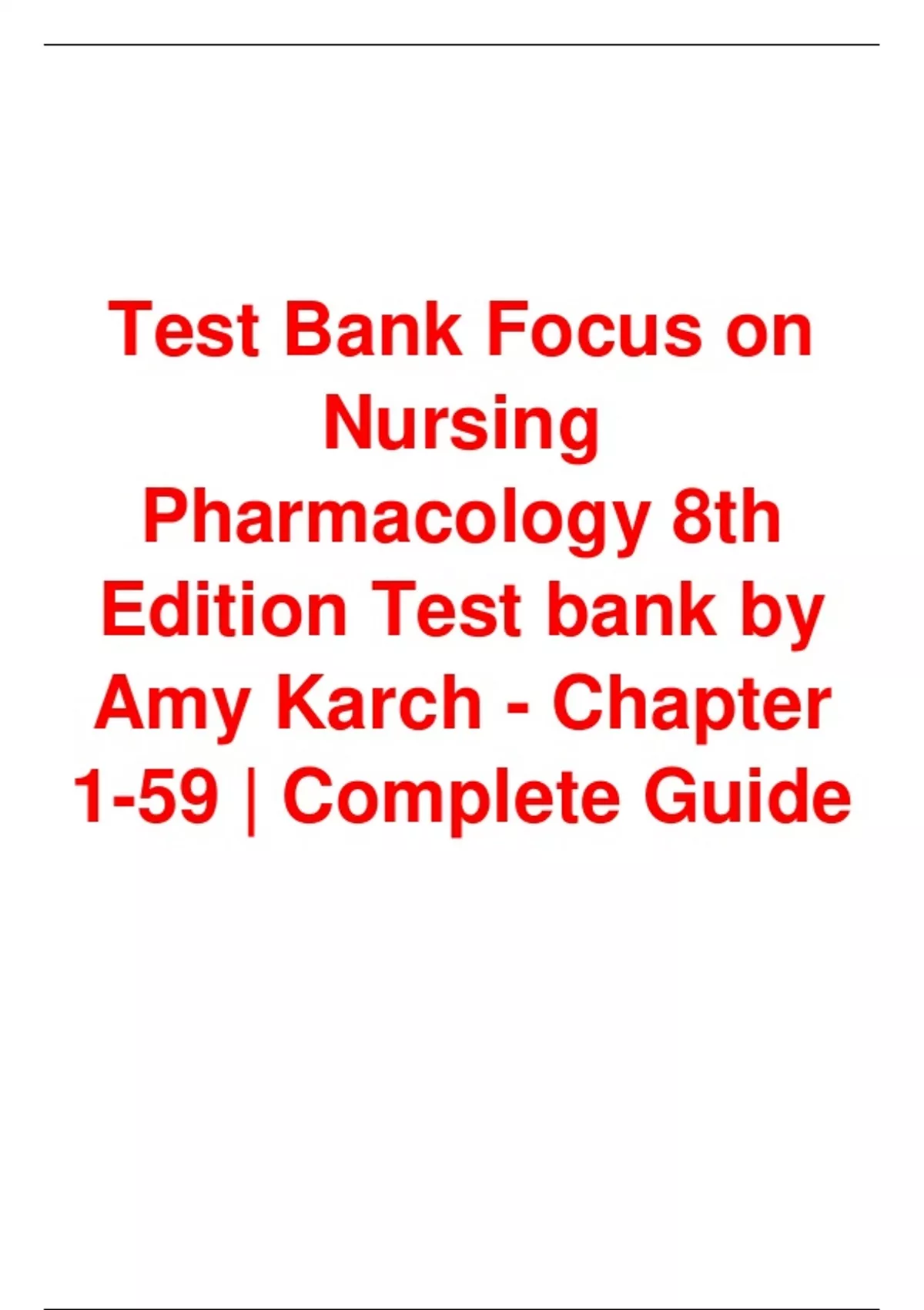 Test Bank Focus on Nursing Pharmacology 8th Edition Test bank by Amy Karch