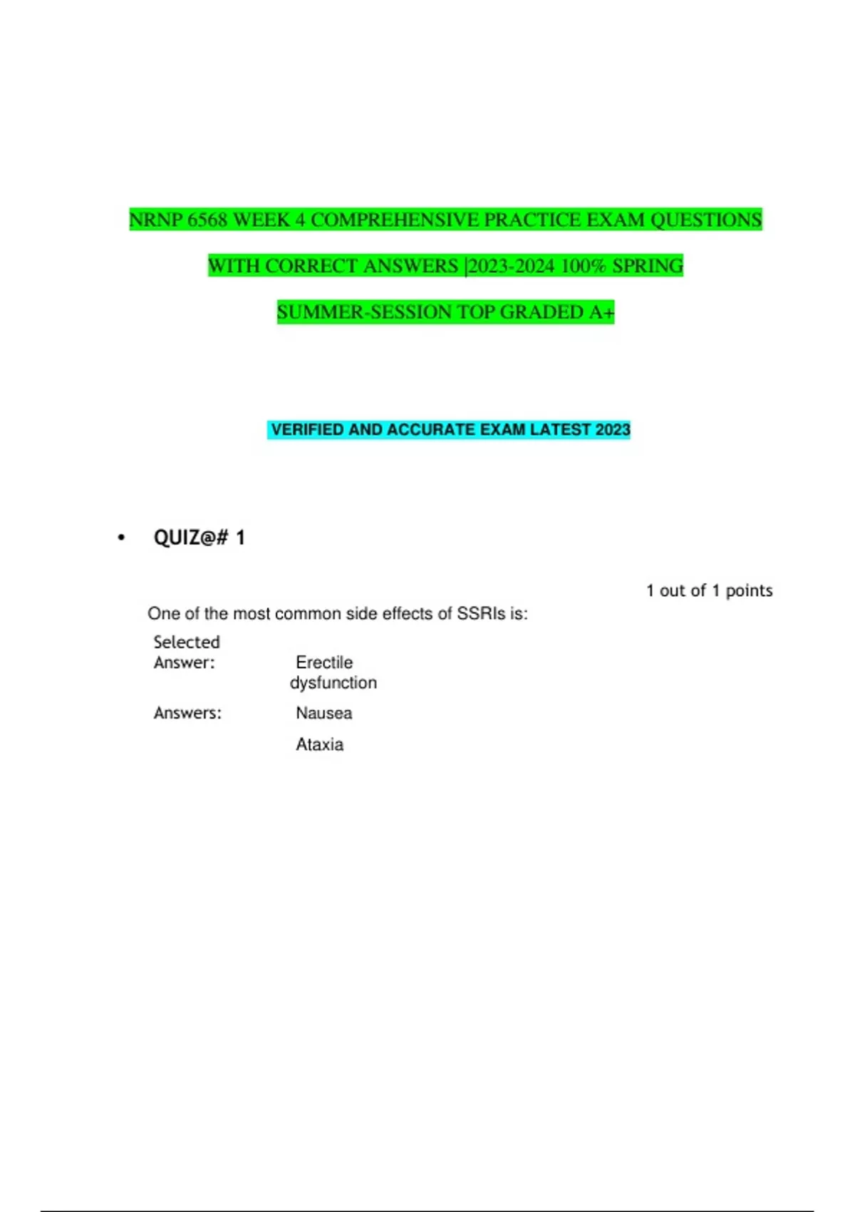 NRNP 6568 Week 4 Comprehensive Practice EXAM Q&A |% Spring Summer Session/NRNP 6568 Week 4 Comprehensive Practice EXAM Q&A |% Spring Summer Session