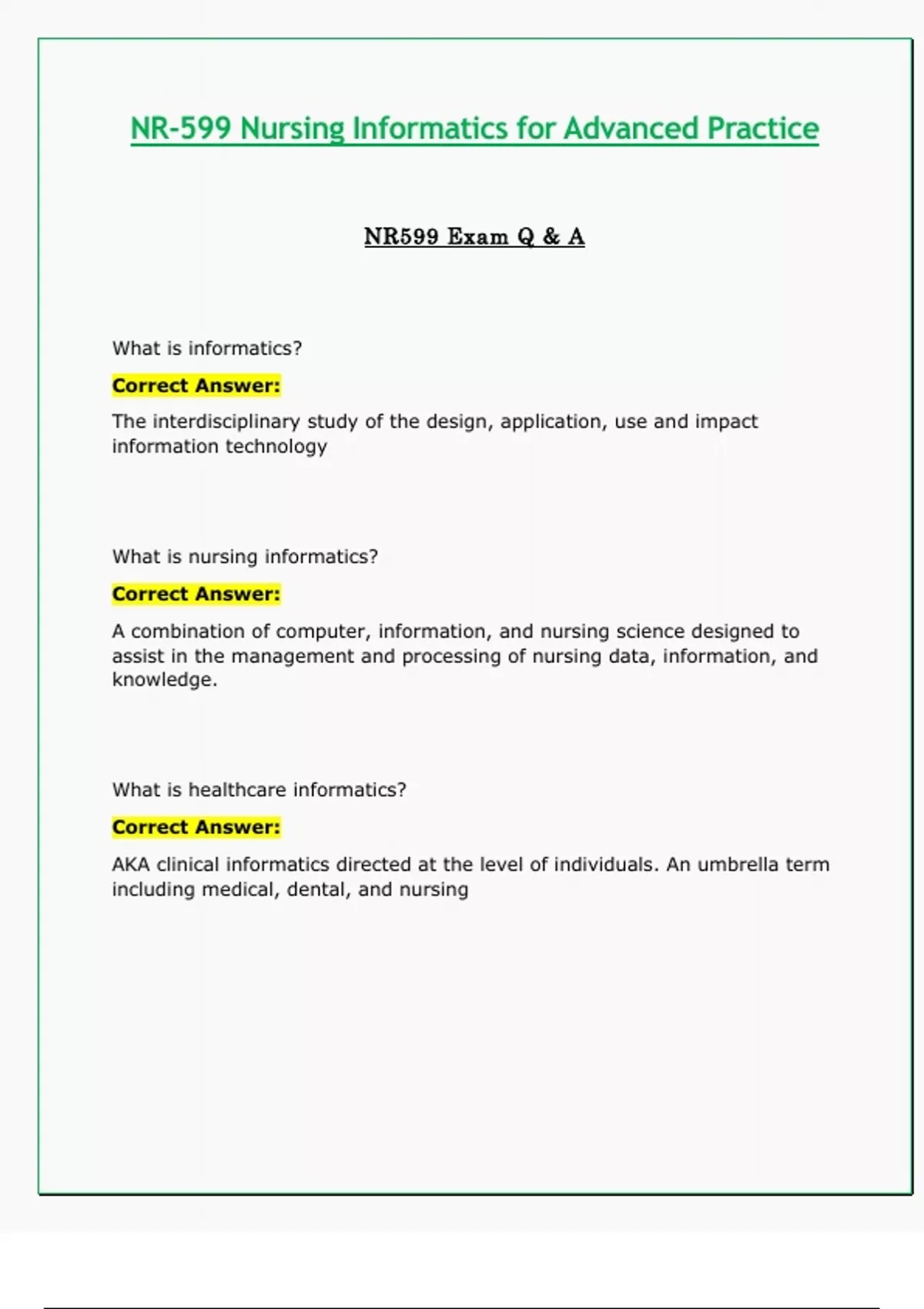 - NR 599 Nursing Informatics For Advanced Practice (NR599)