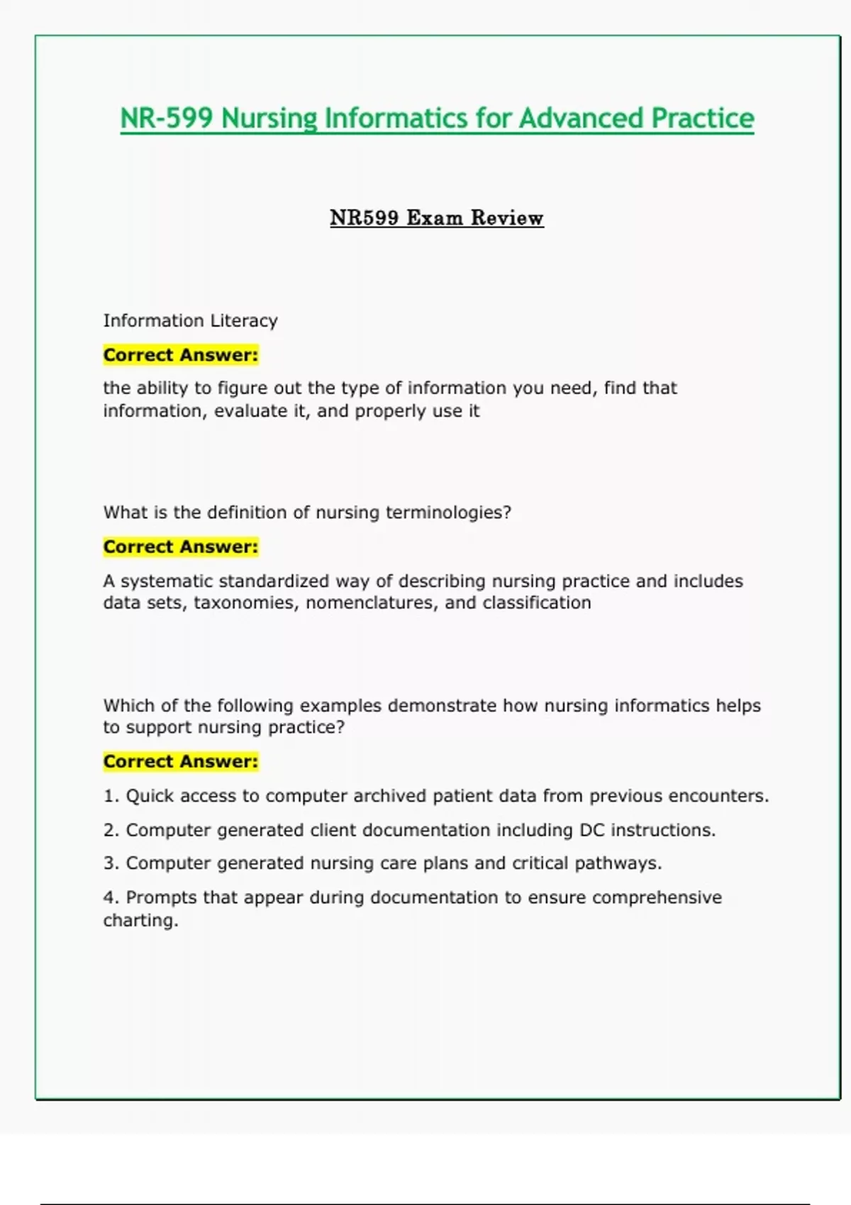 NR 599 / NR599 Exam Review (Latest 2024 / 2025) Nursing Informatics for Advanced Practice - Chamberlain