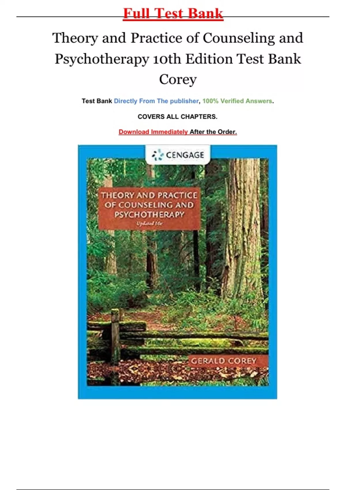 Test Bank Theory and Practice of Group Counseling 10th Edition by Gerald Corey - Full Test Bank