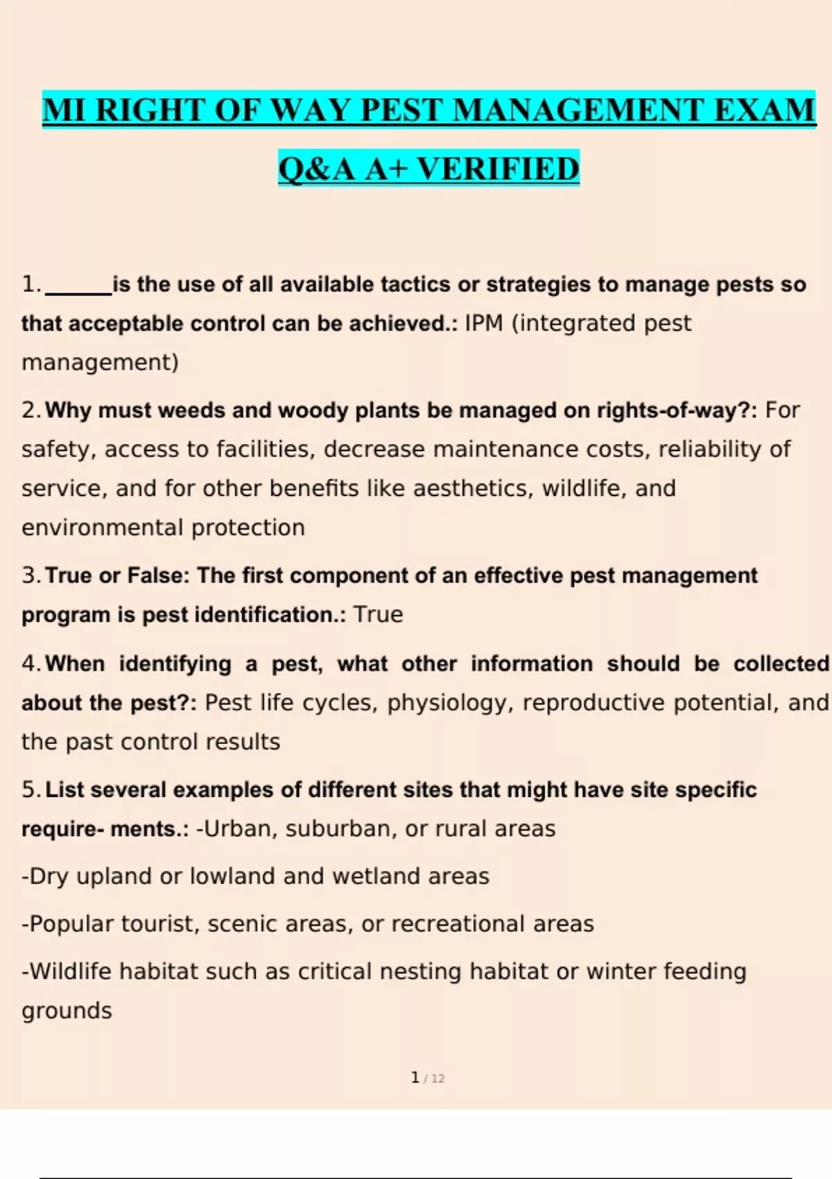 mi right of way pest management exam qa a verifi