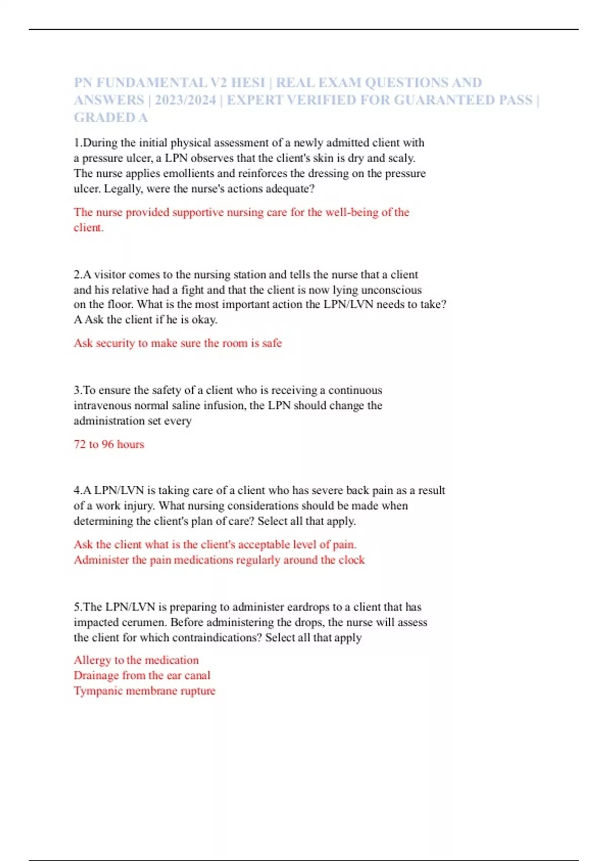 PN FUNDAMENTAL V2 HESI | REAL EXAM QUESTIONS AND ANSWERS | 2023/2024 | EXPERT VERIFIED FOR GUARANTEED PASS | GRADED A