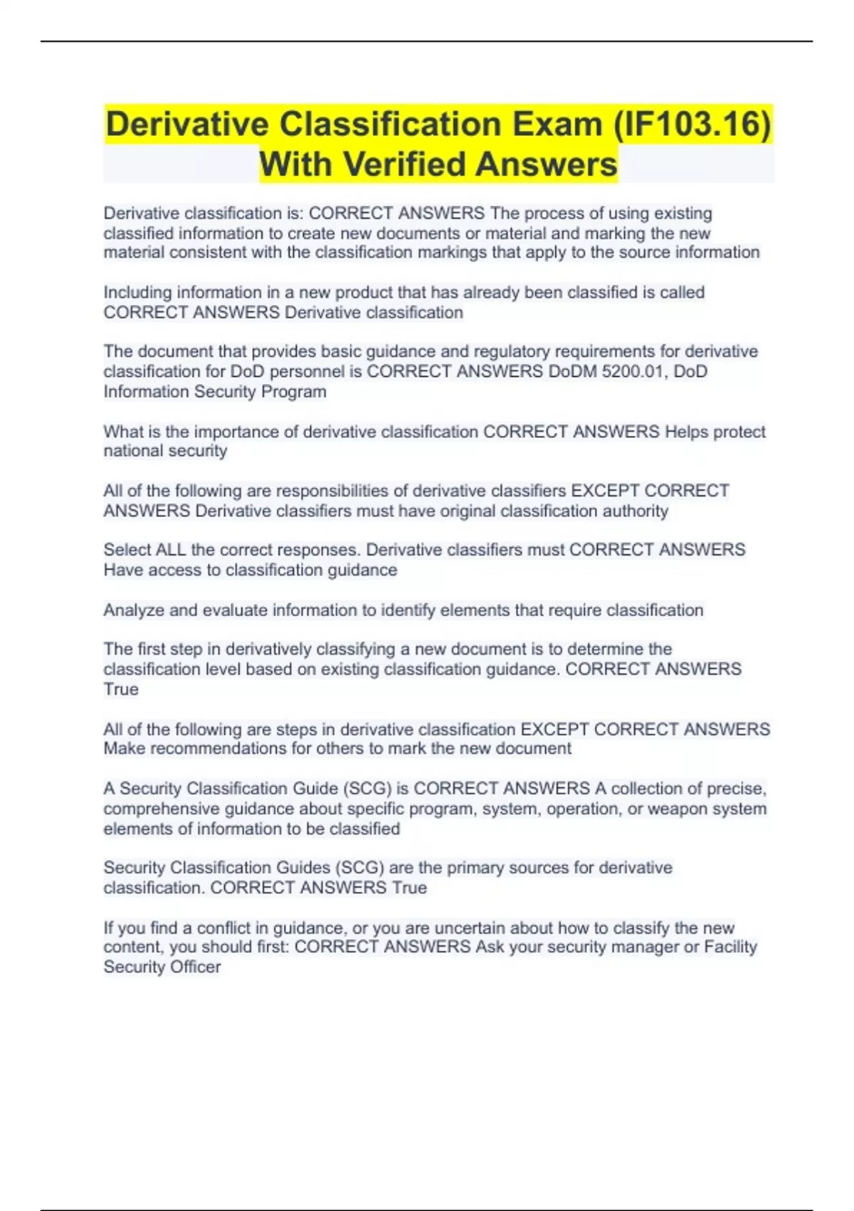 Derivative Classification Exam (IF103.16) With Verified Answers