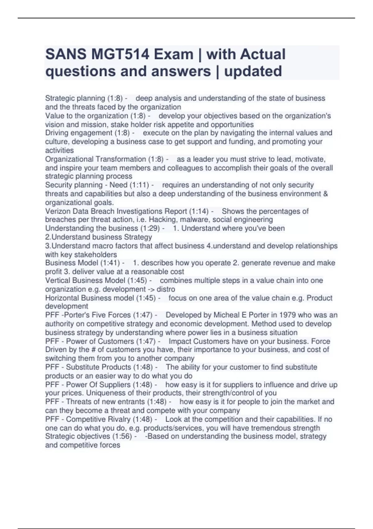 SANS MGT514 Exam | with Actual questions and answers | updated