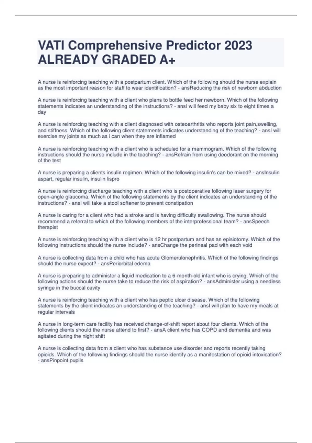 - VATI Comprehensive Predictor 2023 ALREADY GRADED A