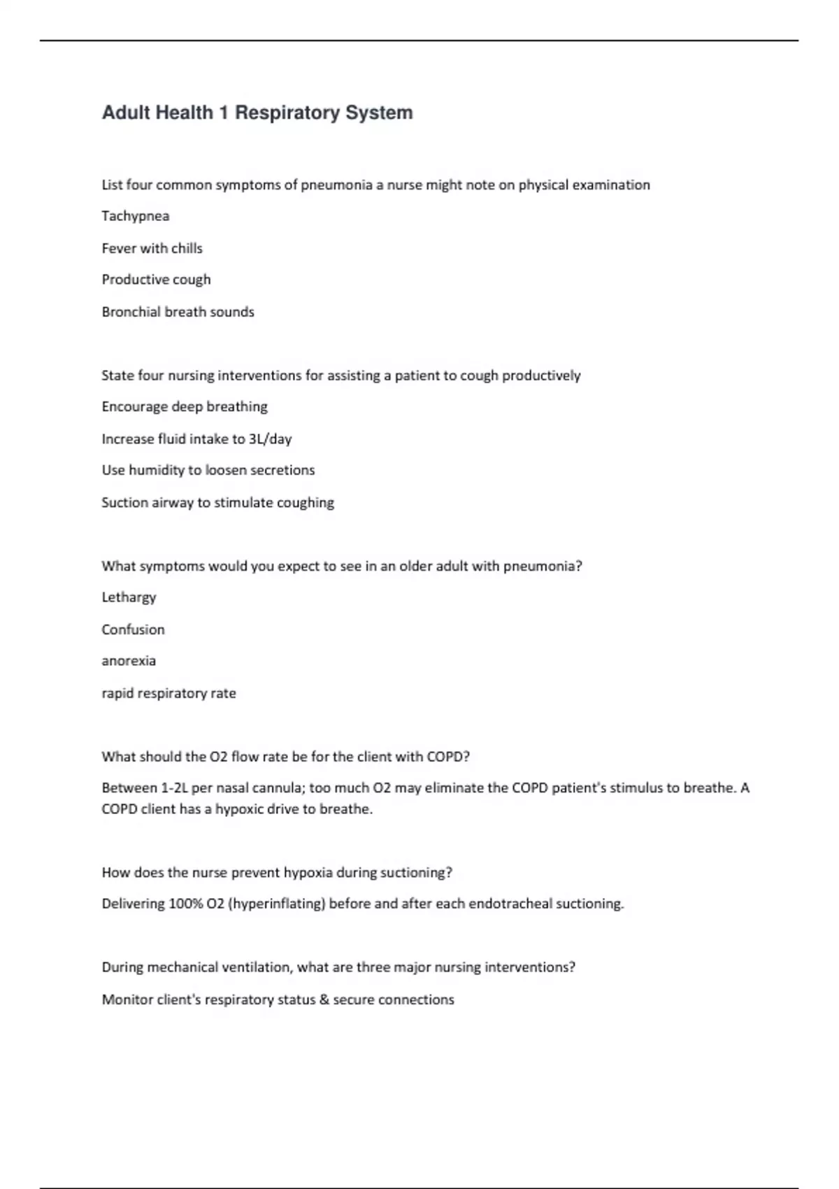 - Adult Health 1 Respiratory System