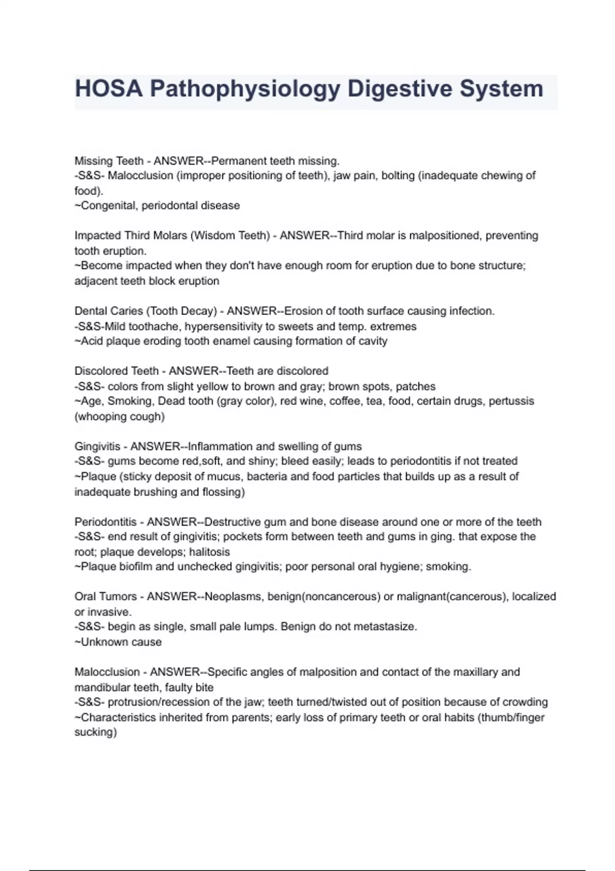 HOSA Pathophysiology Digestive System