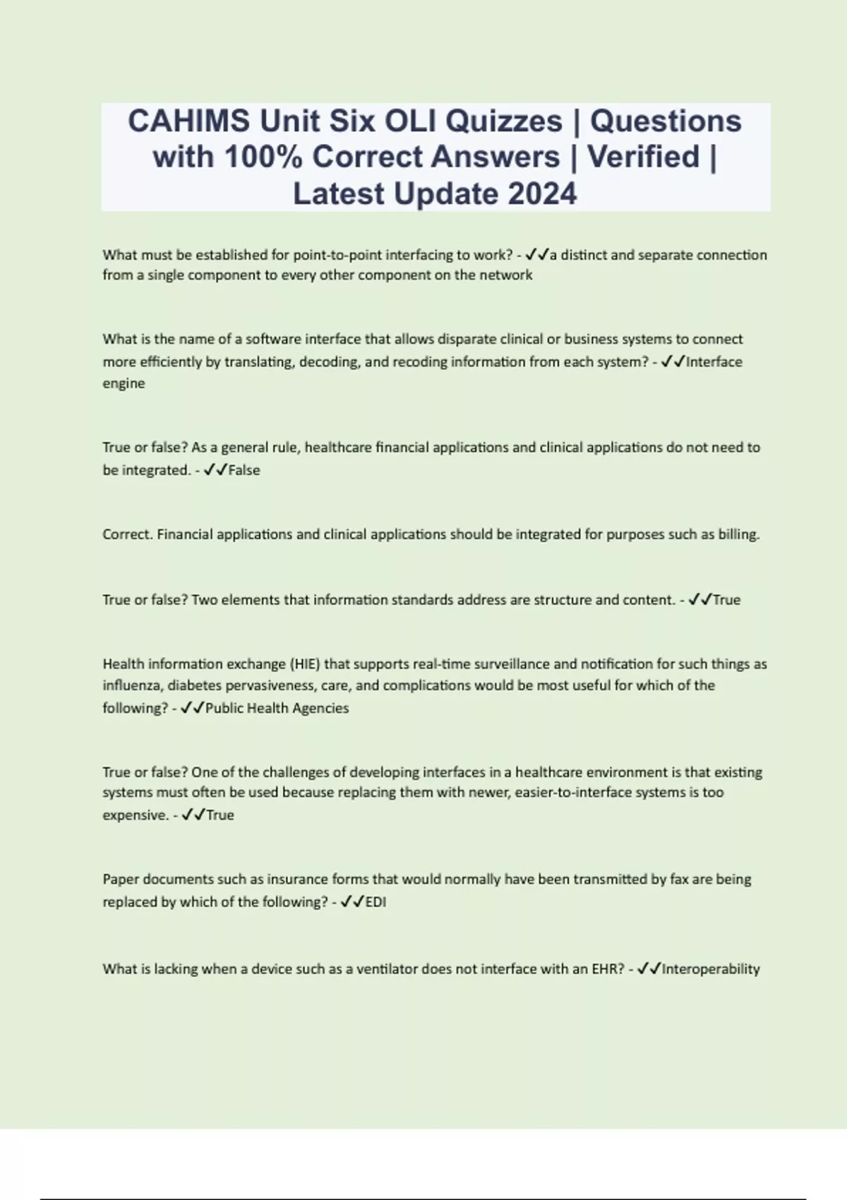 CAHIMS Unit Six OLI Quizzes | Questions with 100% Correct Answers | Verified | Latest Update 2024