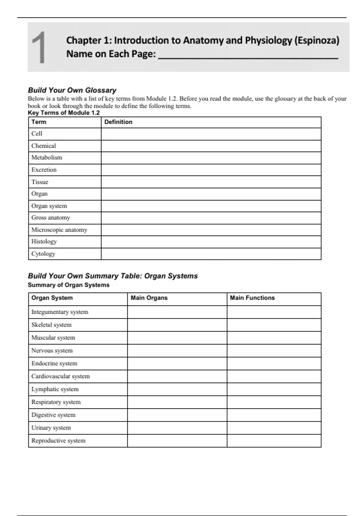 Learning Guide Intro to anatomy and physiology