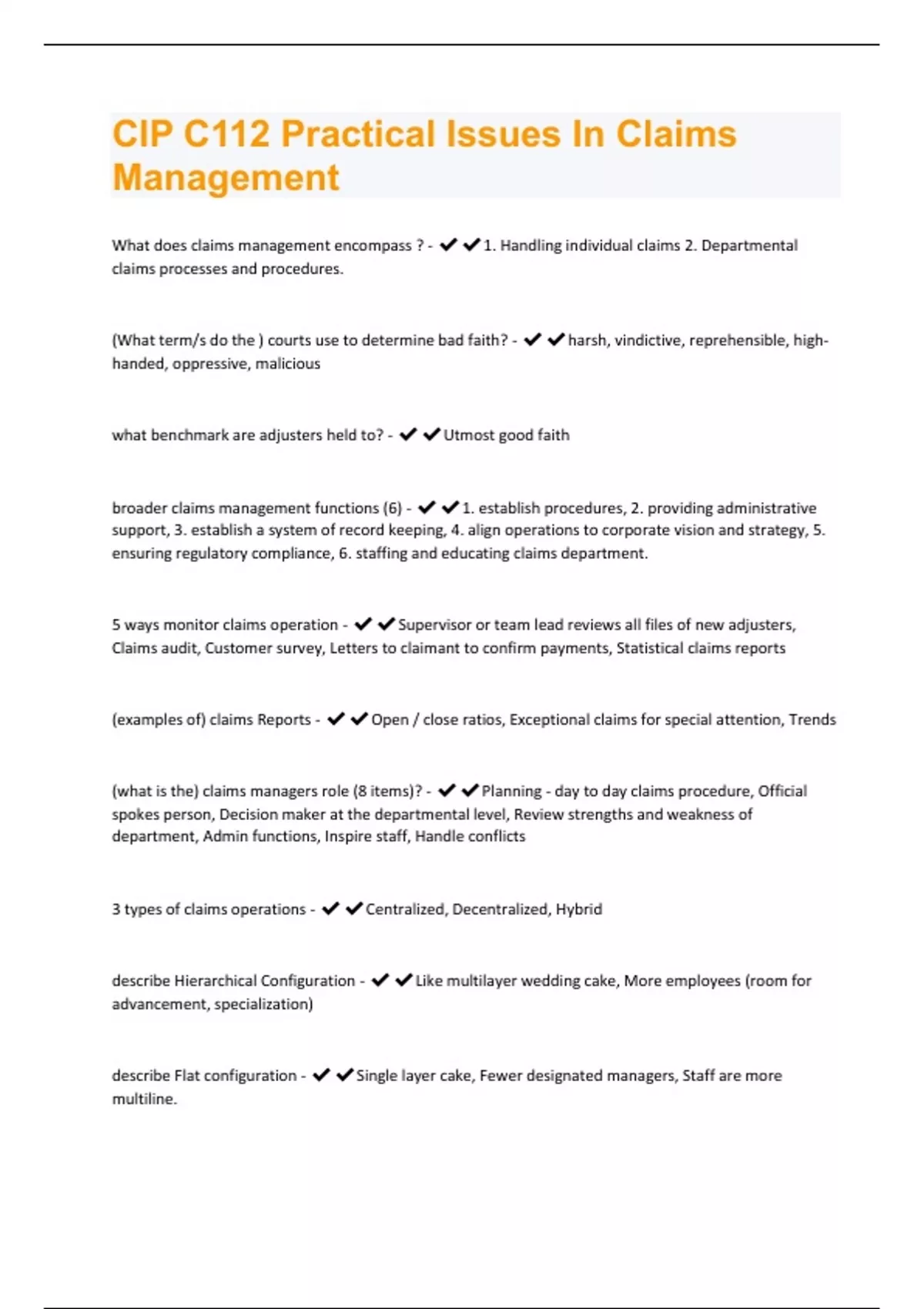 CIP C112 Practical Issues In Claims Management Exam All Possible Questions and Answers with complete solution