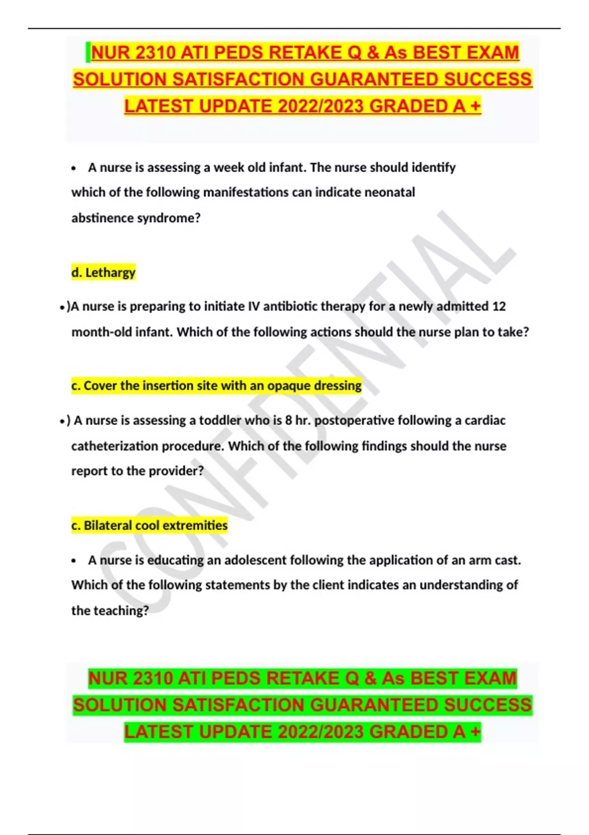 NUR 2310 ATI PEDS RETAKE Q & As BEST EXAM SOLUTION SATISFACTION GUARANTEED SUCCESS LATEST UPDATE 2023/2024 GRADED A + NUR 2310 ATI PEDS RETAKE Q & As BEST EXAM SOLUTION SATISFACTION GUARANTEED SUCCESS LATEST UPDATE 2023/2024 GRADED A +