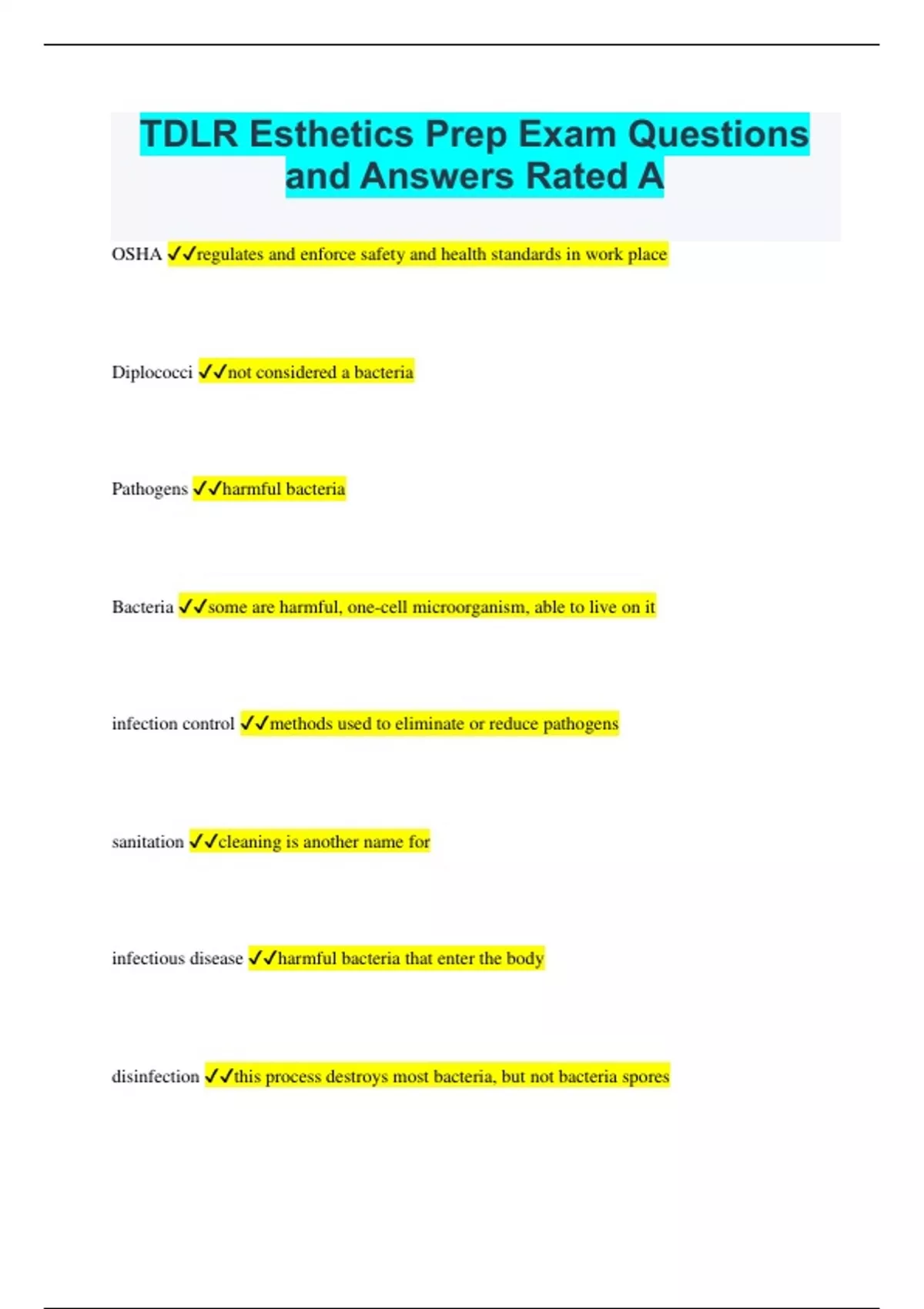 TDLR Esthetics Prep Exam Questions and Answers Rated A+