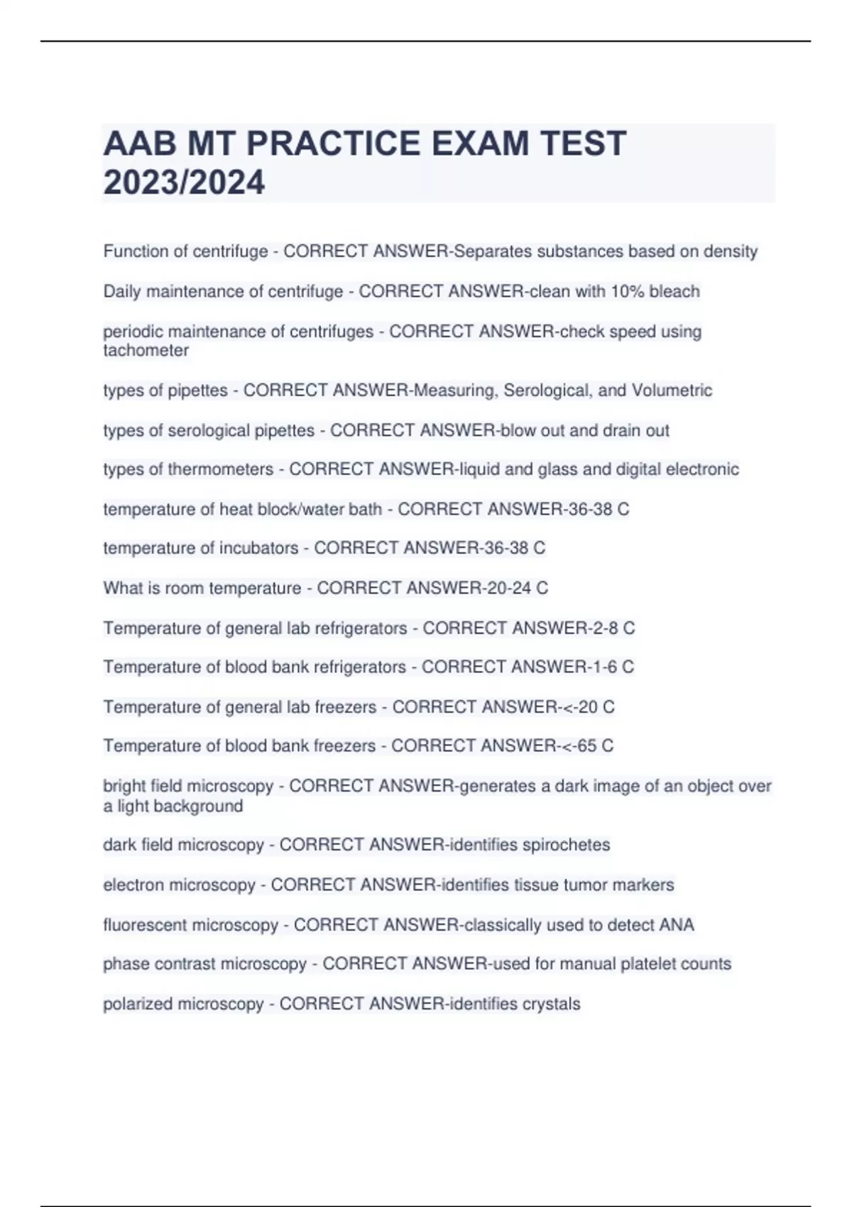 AAB MT PRACTICE EXAM TEST 2023/2024