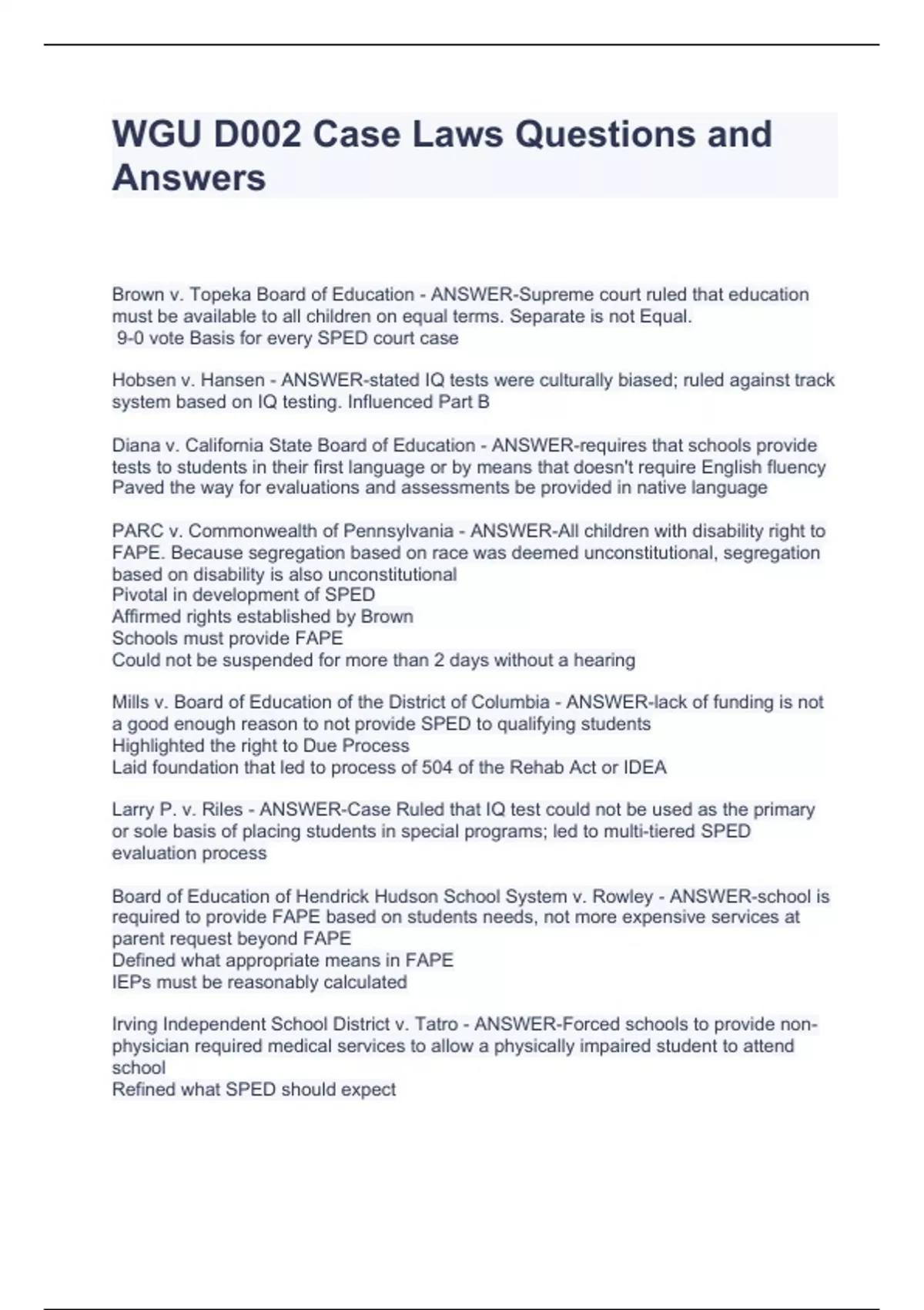 WGU D002 Case Laws Questions and Answers WGU D002 Case Laws Questions and Answers WGU D002 Case Laws Questions and Answers WGU D002 Case Laws Questions and Answers