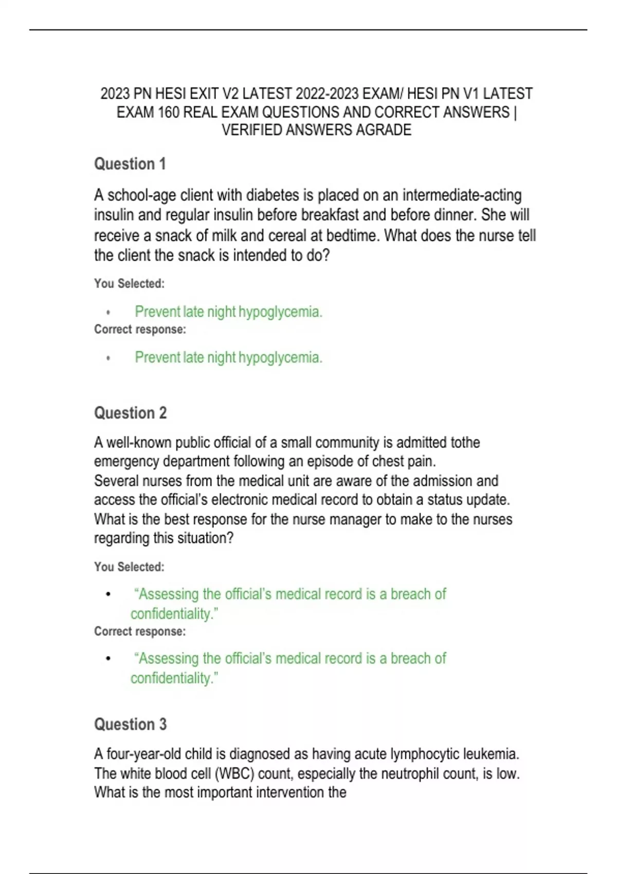 2023 PN HESI EXIT V2 LATEST EXAM/ HESI PN V1 LATEST EXAM 160 REAL EXAM QUESTIONS AND CORRECT ANSWERS | VERIFIED ANSWERS AGRADE