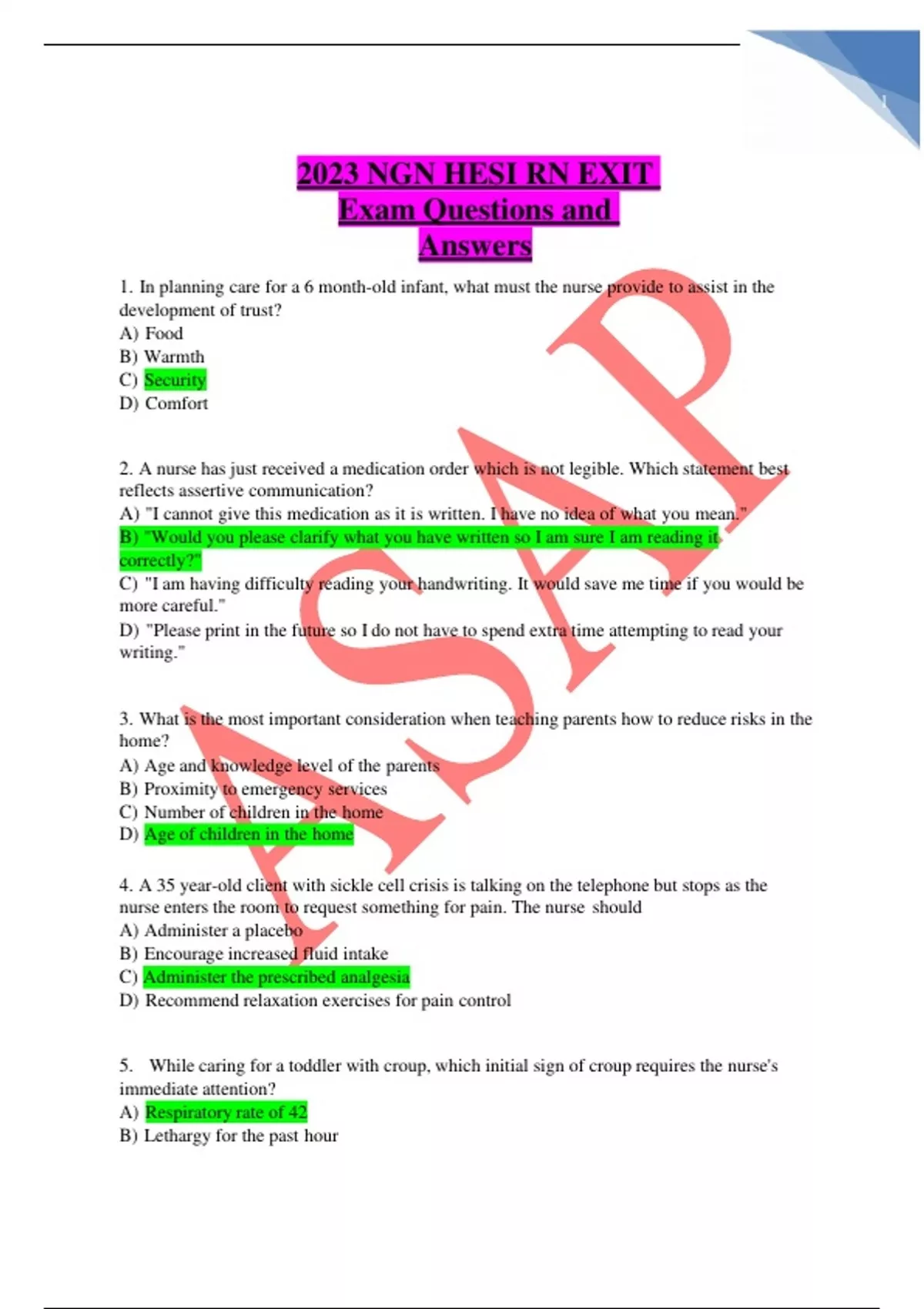 2023 ngn hesi rn exit exam questions and