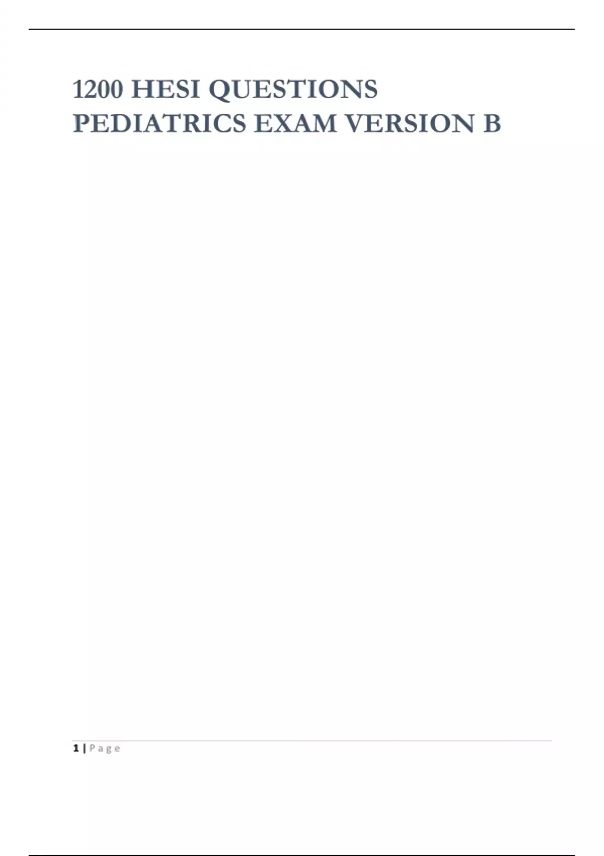 1200 HESI QUESTIONS PEDIATRICS EXAM VERSION B