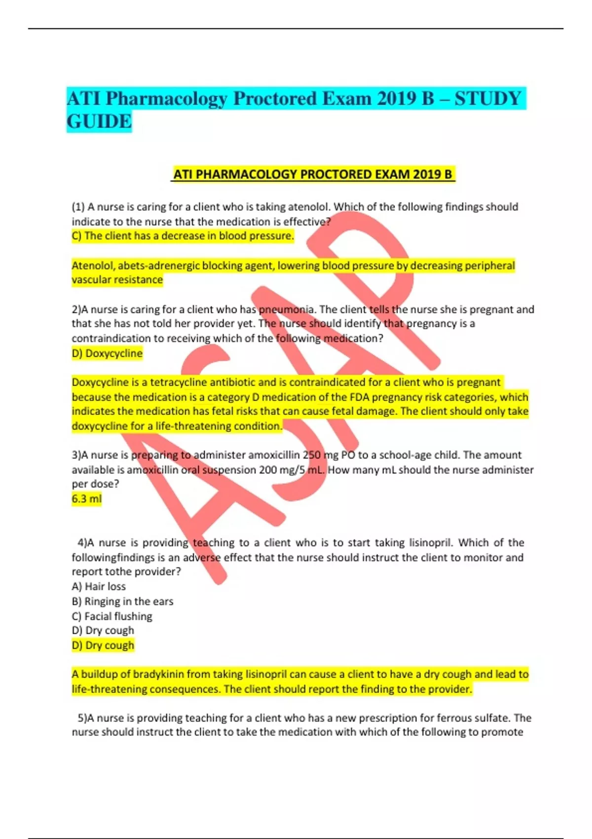 ATI Pharmacology Proctored Exam 2019 B – STUDY GUIDE