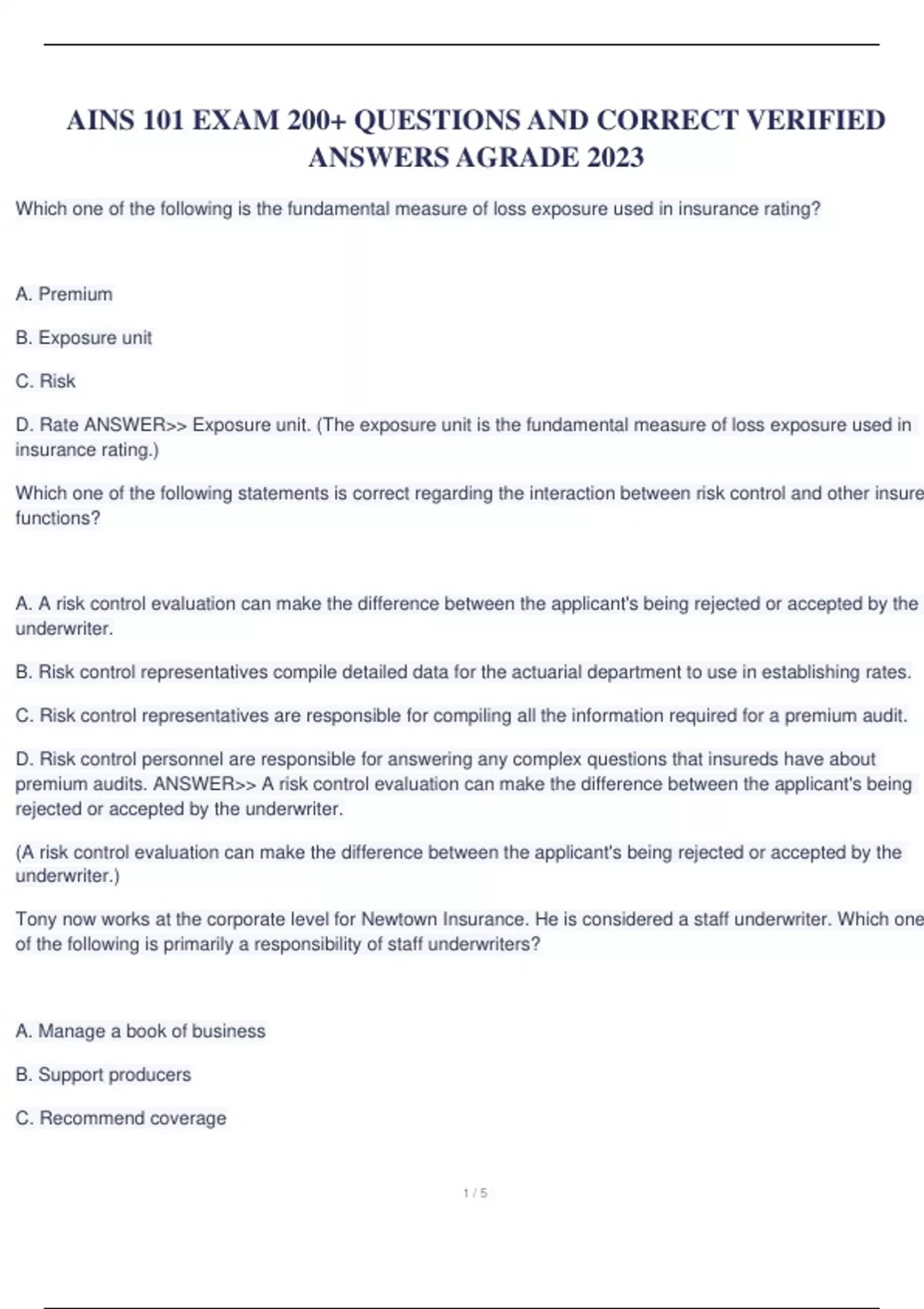 AINS 101 EXAM 200+ QUESTIONS AND CORRECT VERIFIED ANSWERS AGRADE 2023.