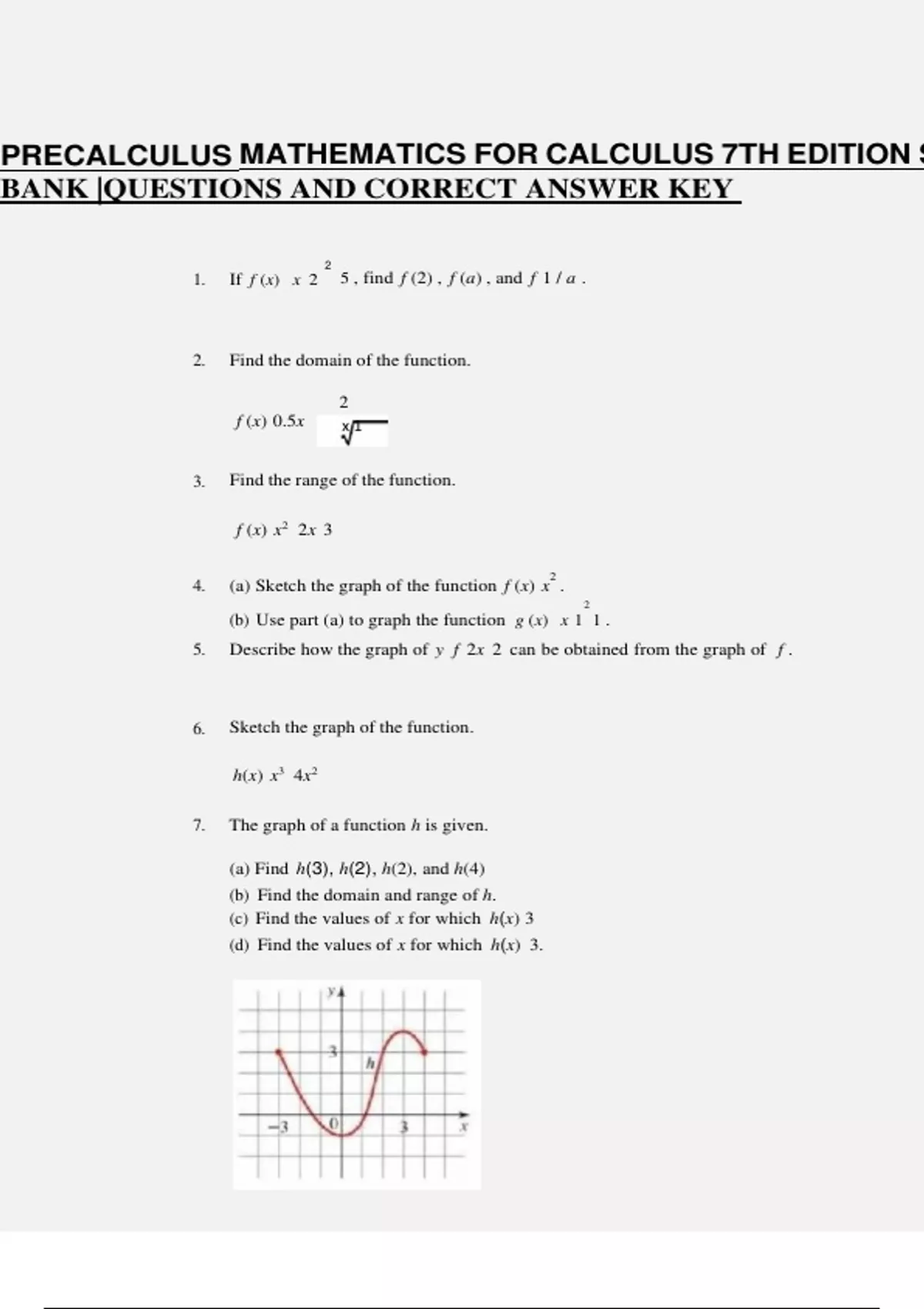 PRECALCULUS MATHEMATICS FOR CALCULUS 7TH EDITION STEWART TEST BANK |QUESTIONS AND CORRECT ANSWER KEY
