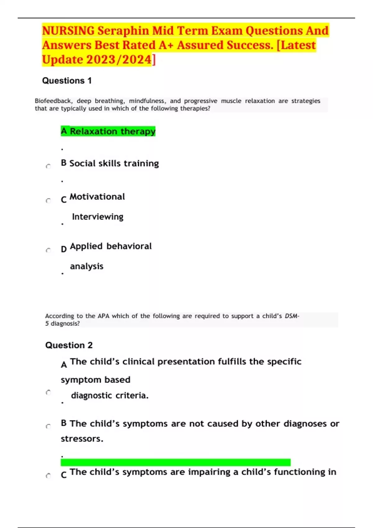 NURSING Seraphin Mid Term Exam Questions And Answers Best Rated A+ Assured Success. [Latest Update 2023/2024]