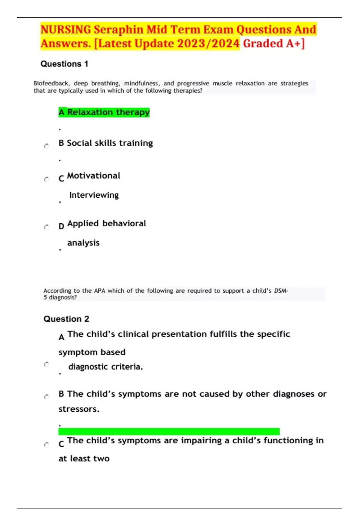 NURSING Seraphin Mid Term Exam Questions And Answers. [Latest Update 2023/2024 Graded A+]