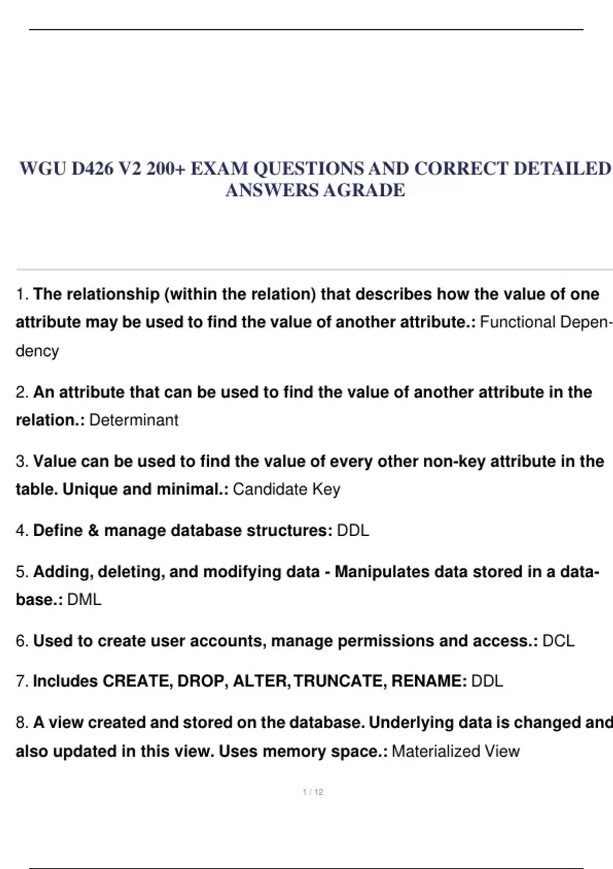 WGU D426 V2 EXAM QUESTIONS AND CORRECT DETAILED ANSWERS AGRADE