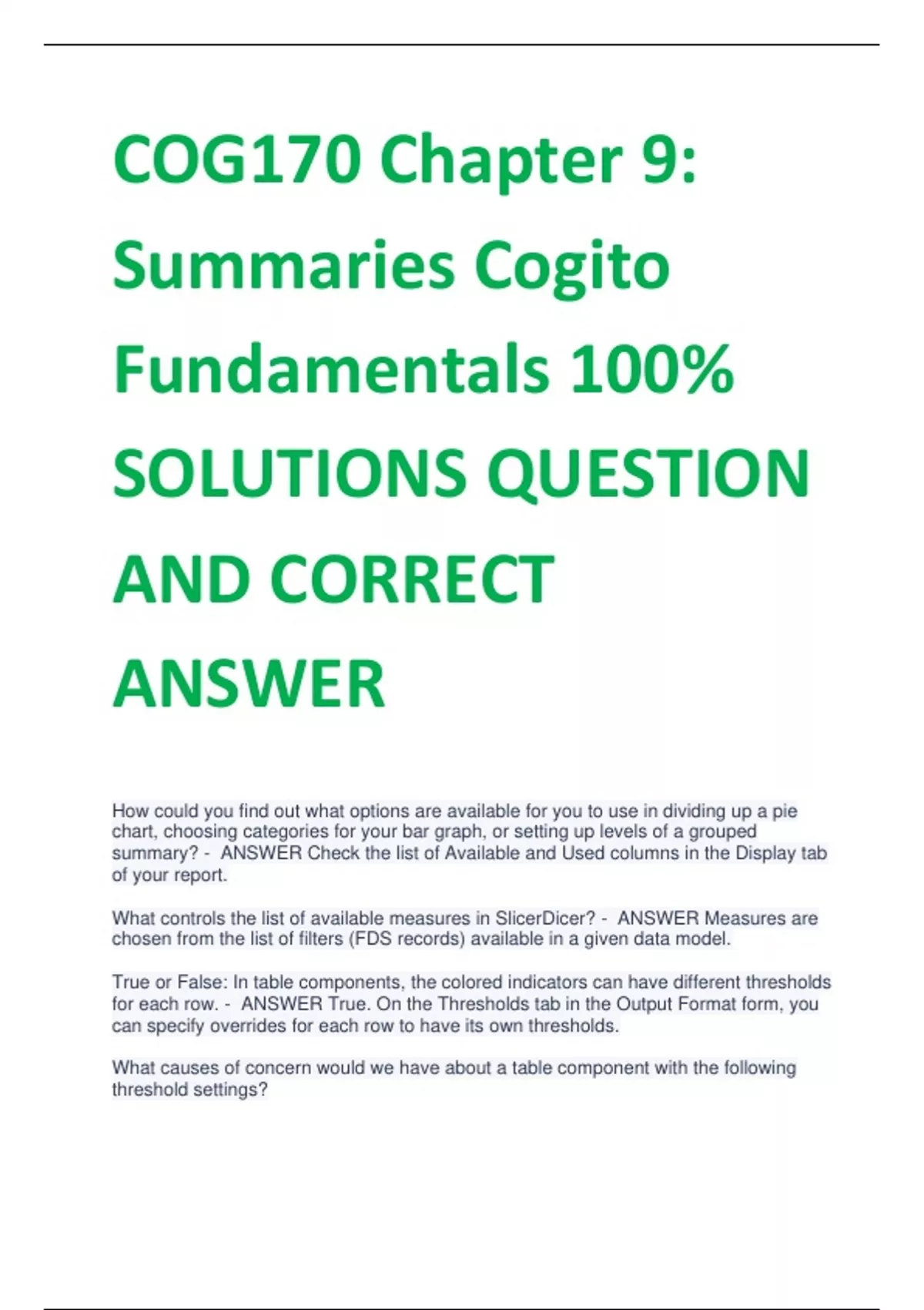 UPDATED COG170 Chapter 9: Summaries Cogito Fundamentals 100% SOLUTIONS QUESTION AND CORRECT ANSWER