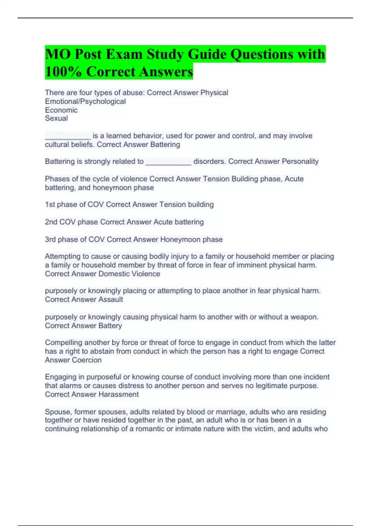 MO Post Exam Study Guide Questions with 100% Correct Answers
