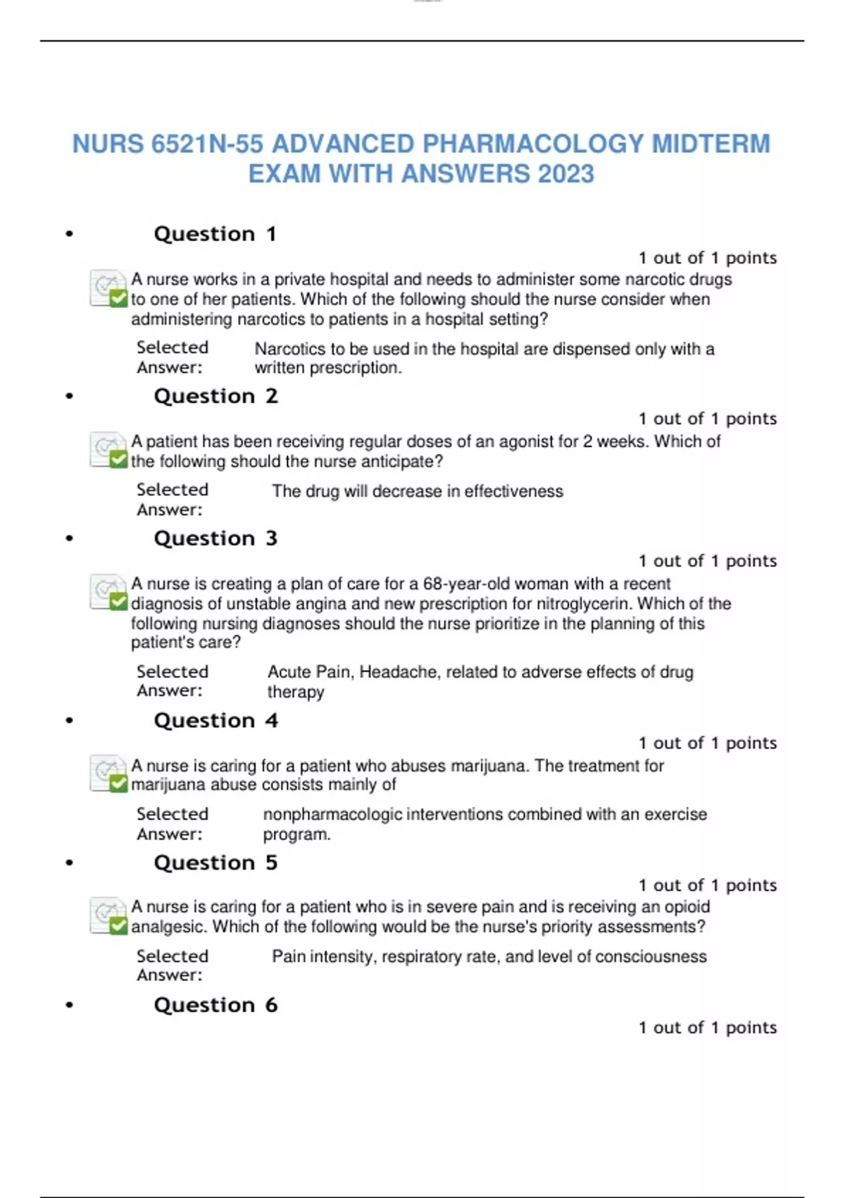 NURS 6521N-55 ADVANCED PHARMACOLOGY MIDTERM EXAM WITH ANSWERS 2023