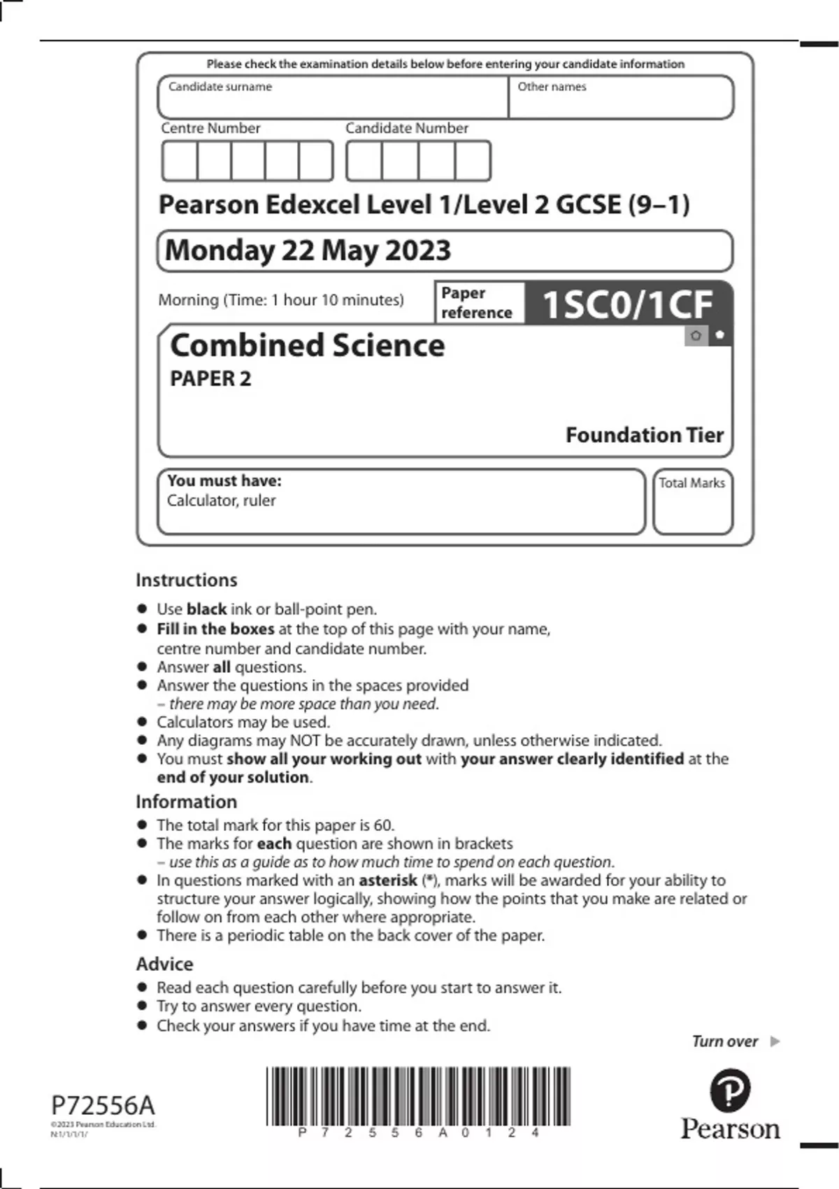 Edexcel gcse foundation combined science chemistry paper 1 june 2023