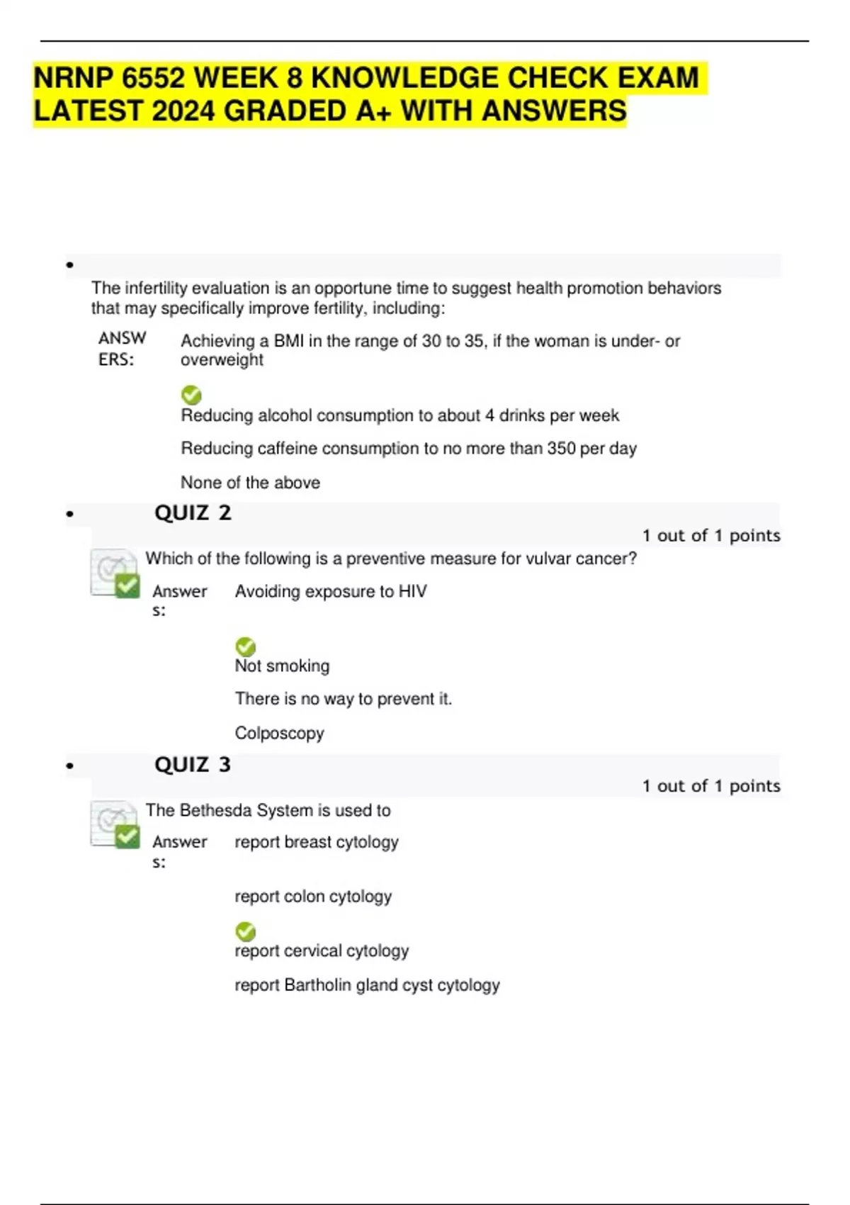 NRNP 6552 WEEK 8 KNOWLEDGE CHECK EXAM LATEST 2024 GRADED A+ WITH ANSWERS