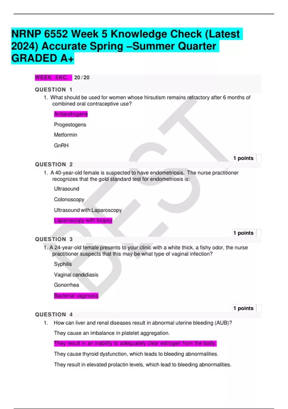NRNP 6552 Week 5 Knowledge Check (Latest 2024) Accurate Spring –Summer Quarter GRADED A+