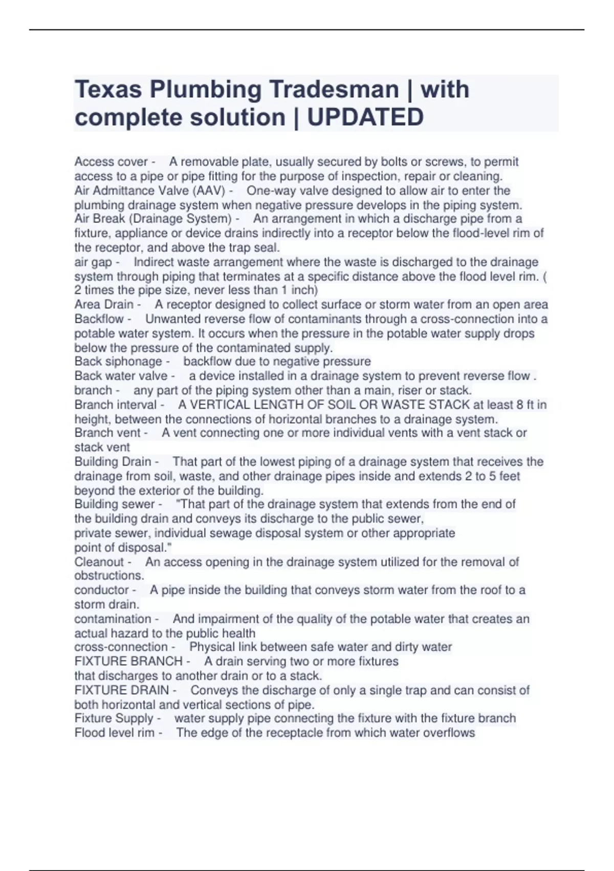 Texas Plumbing Tradesman | with complete solution | UPDATED
