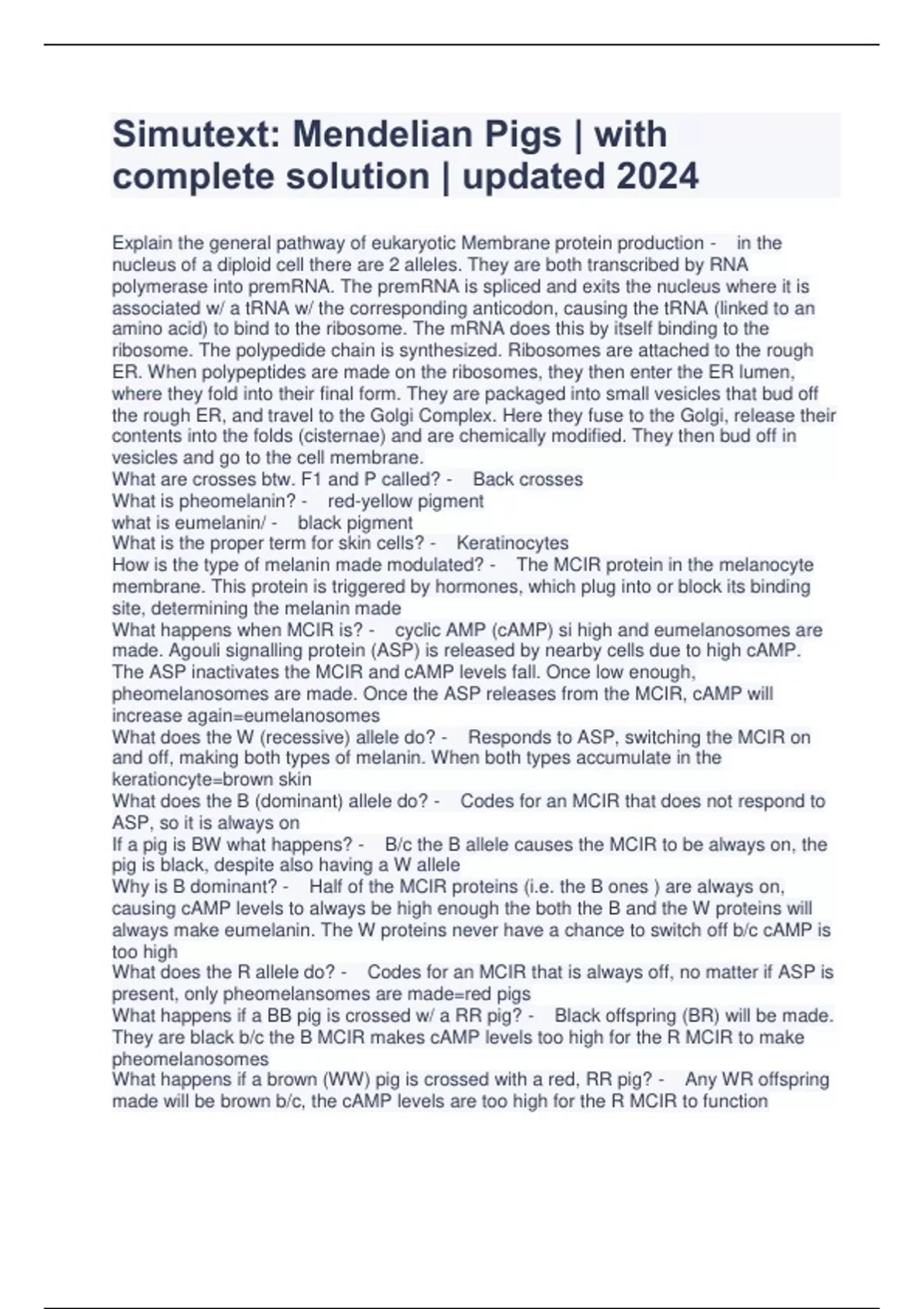 Simutext: Mendelian Pigs | with complete solution | updated 2024