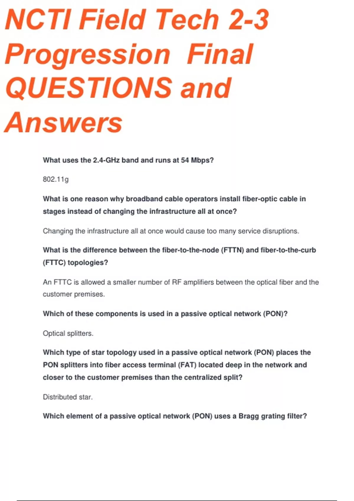 NCTI FIELD TECH 2 TO 3 PROGRESSION FINAL EXAM 100% CORRECT ANSWERS
