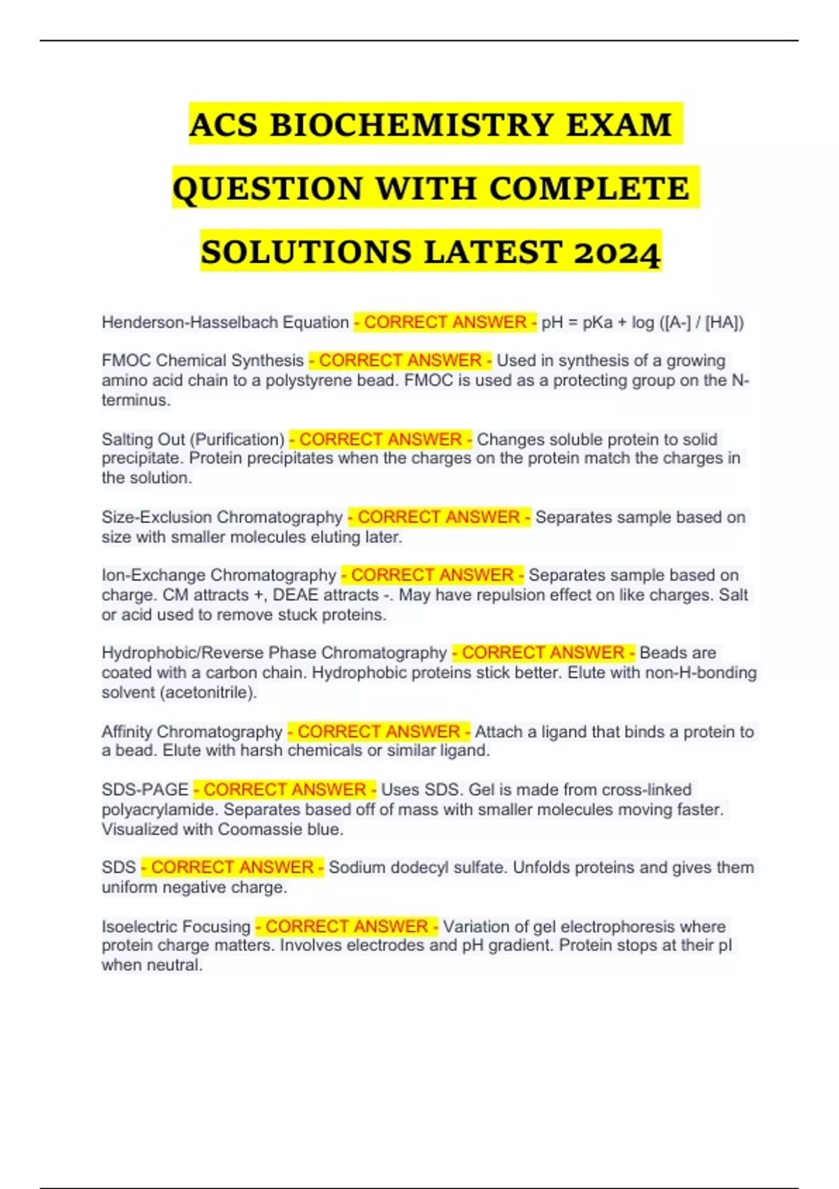 ACS BIOCHEMISTRY EXAM Q&A with verified answers Update