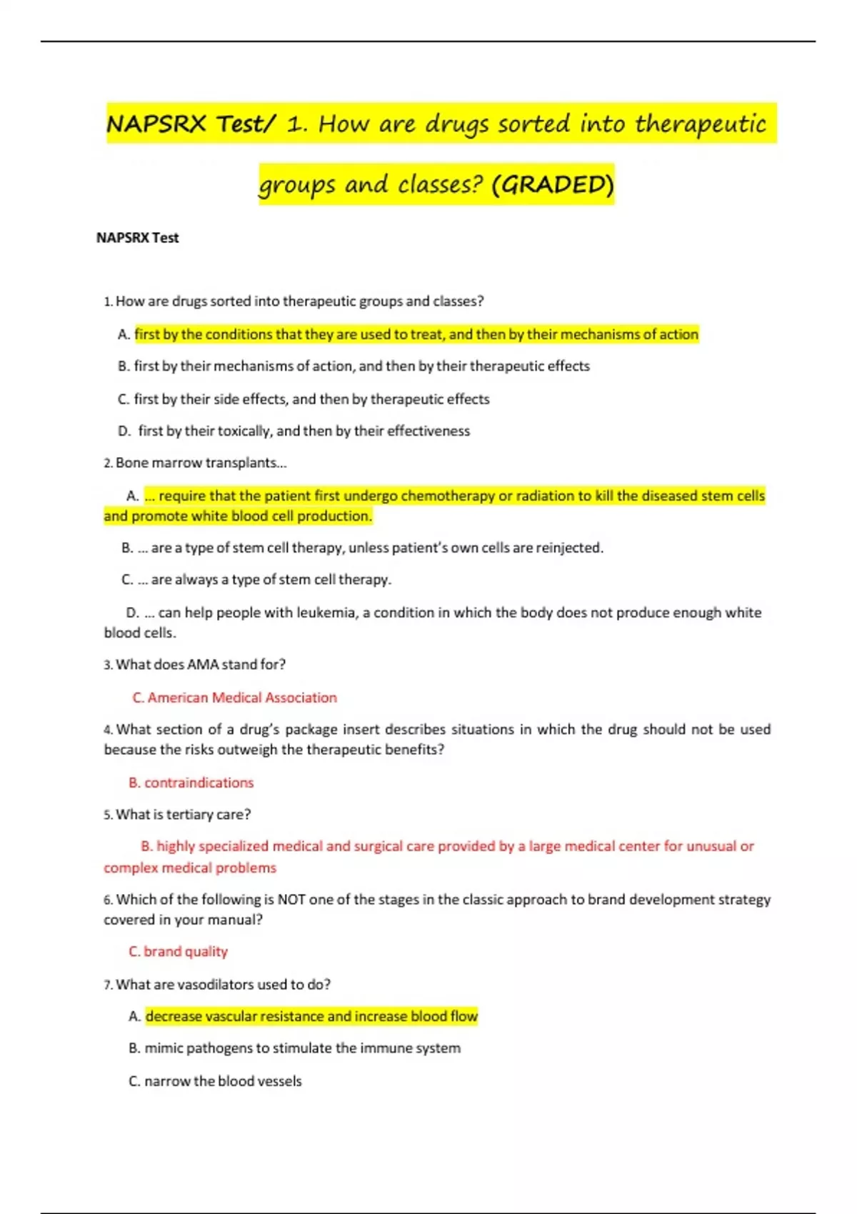NAPSRX Test- How are drugs sorted into therapeutic groups and classes Update