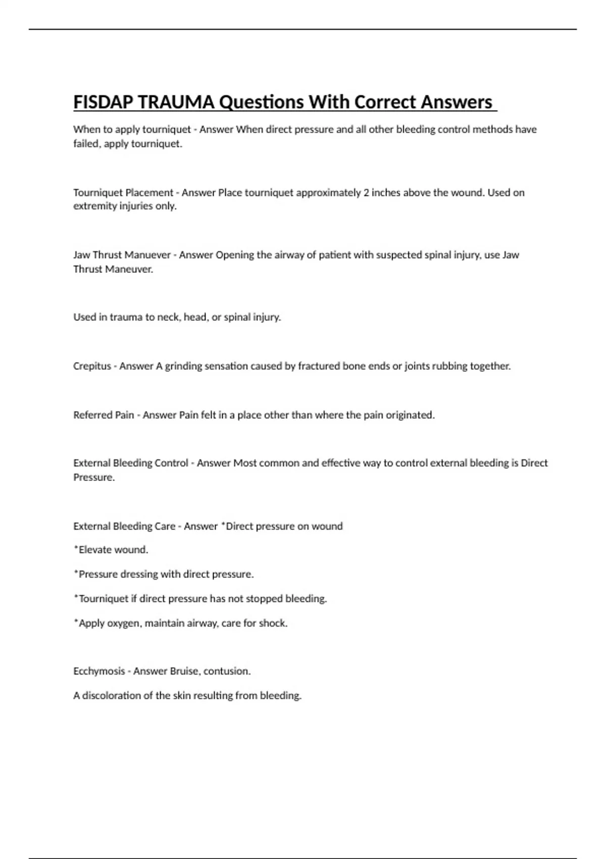 FISDAP TRAUMA Questions With Correct Answers