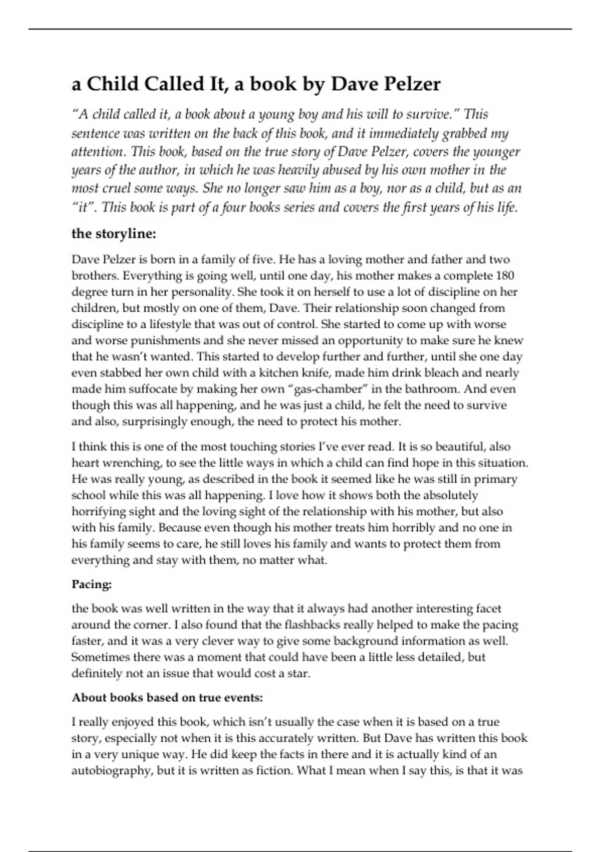 attention. This book, based on the true story of Dave Pelzer, covers the younger